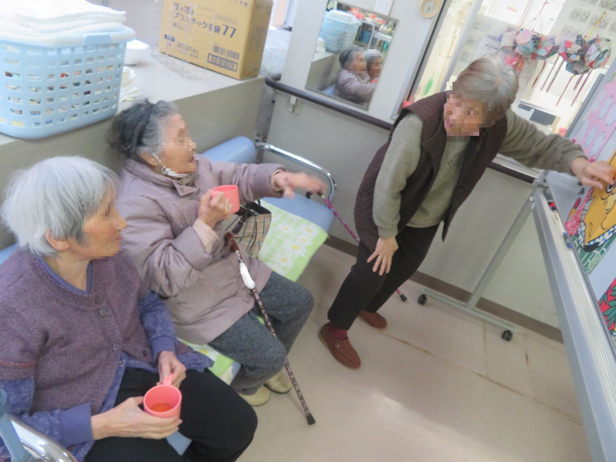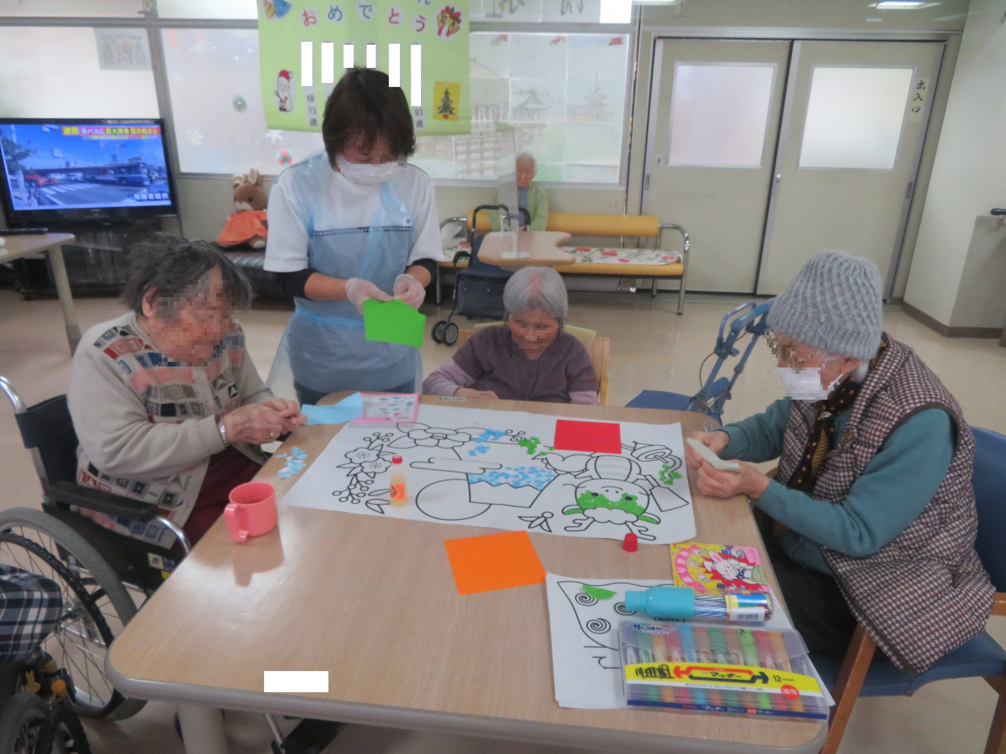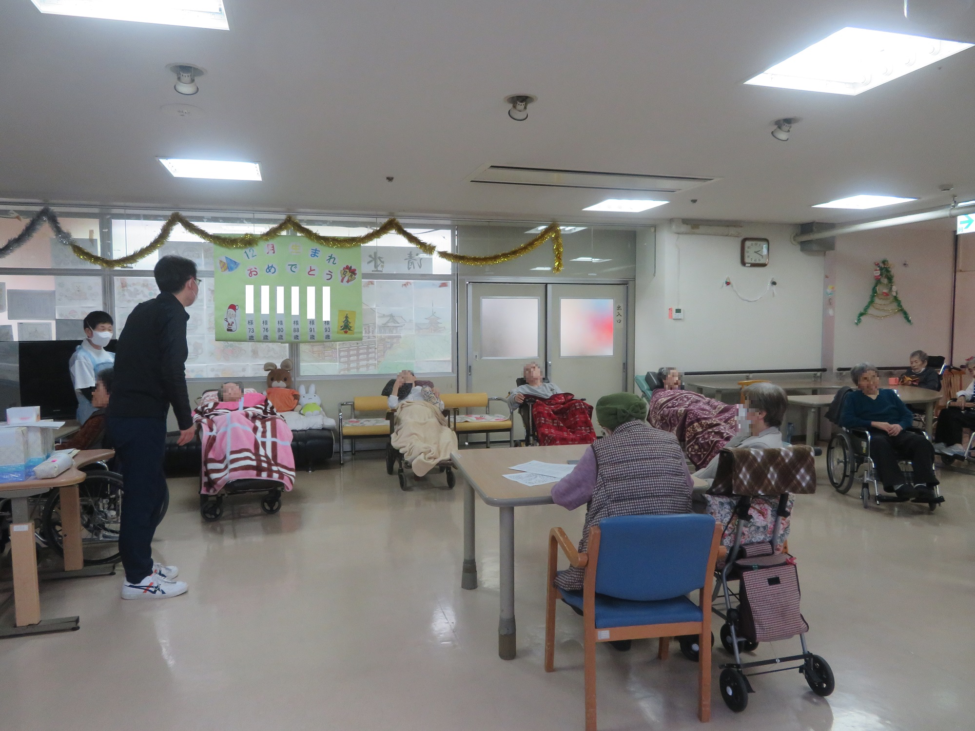 川辺園ではクリスマス飾りを片付け、少し寂しくなったホールに