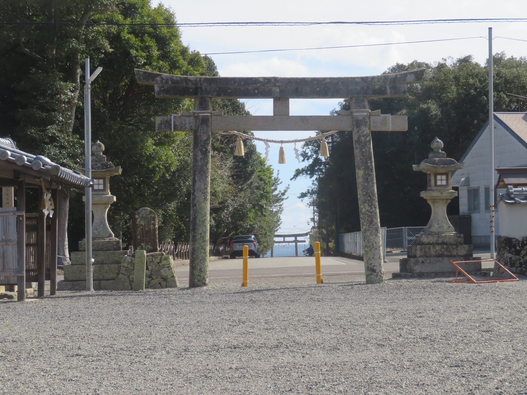 境内から鳥居越しに見える煙樹ヶ浜、映画のワンシーンのように素敵な眺めでした✨