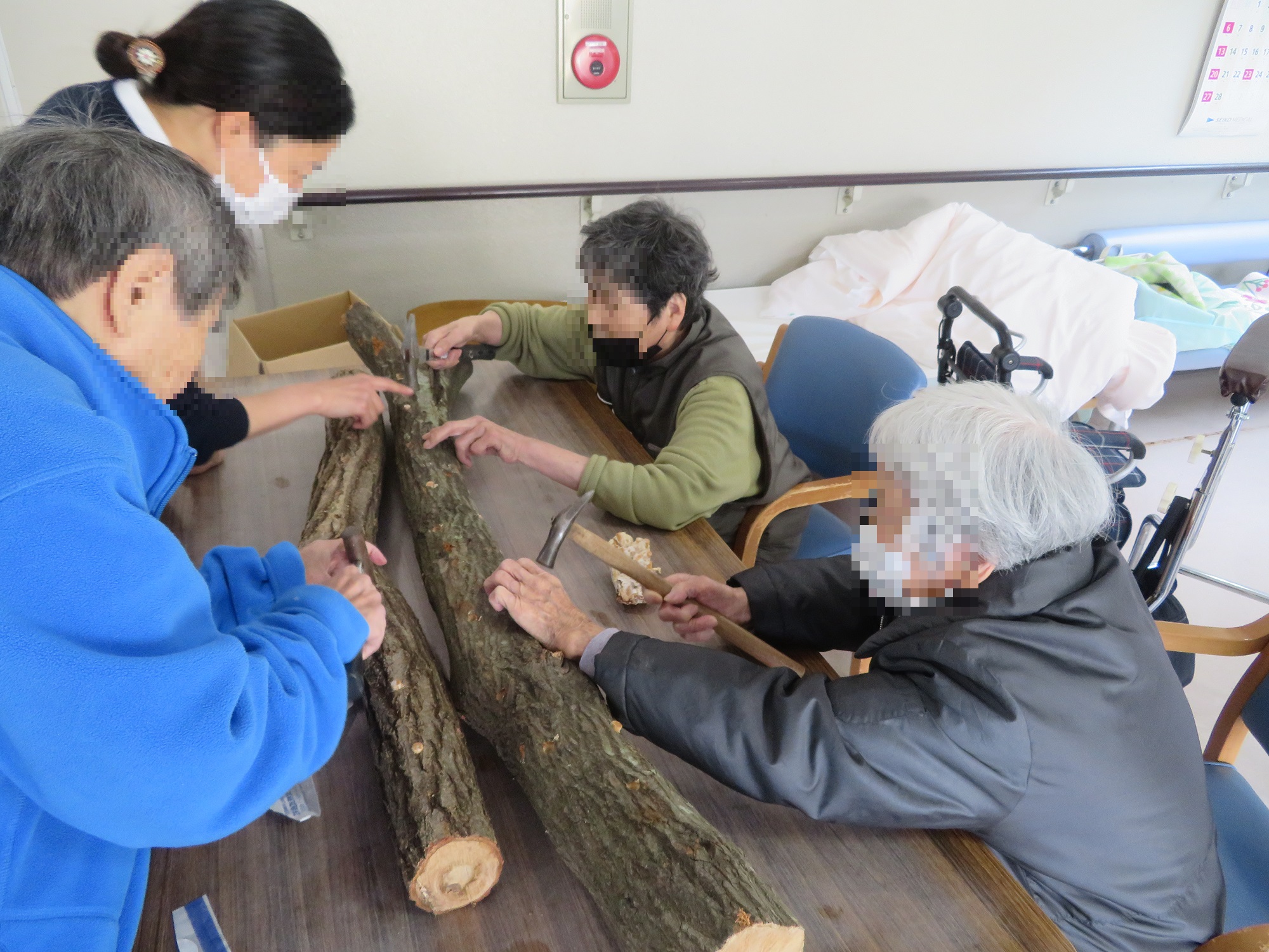 原木にトントン、菌を打ち込んで、こうご期待!!