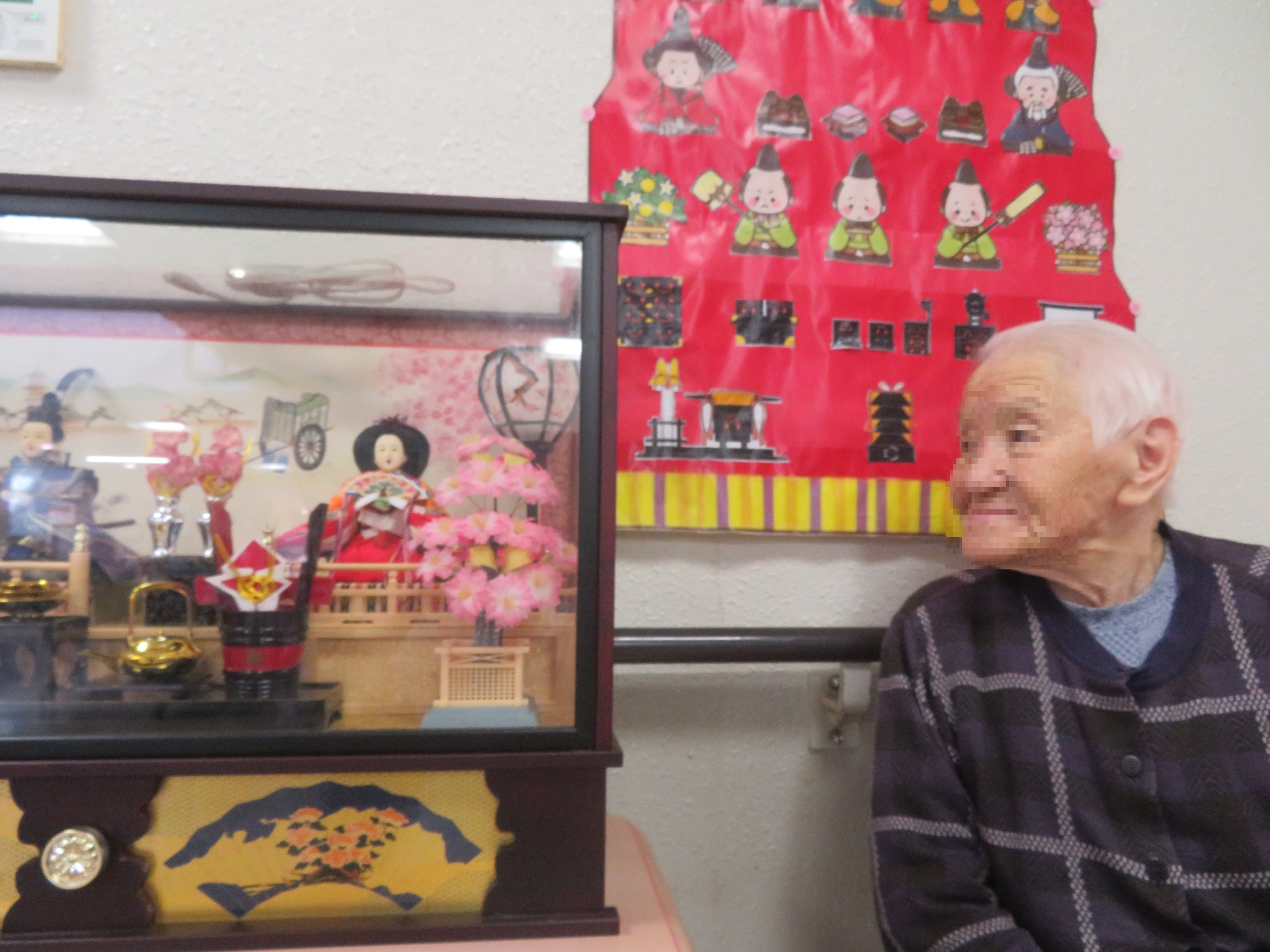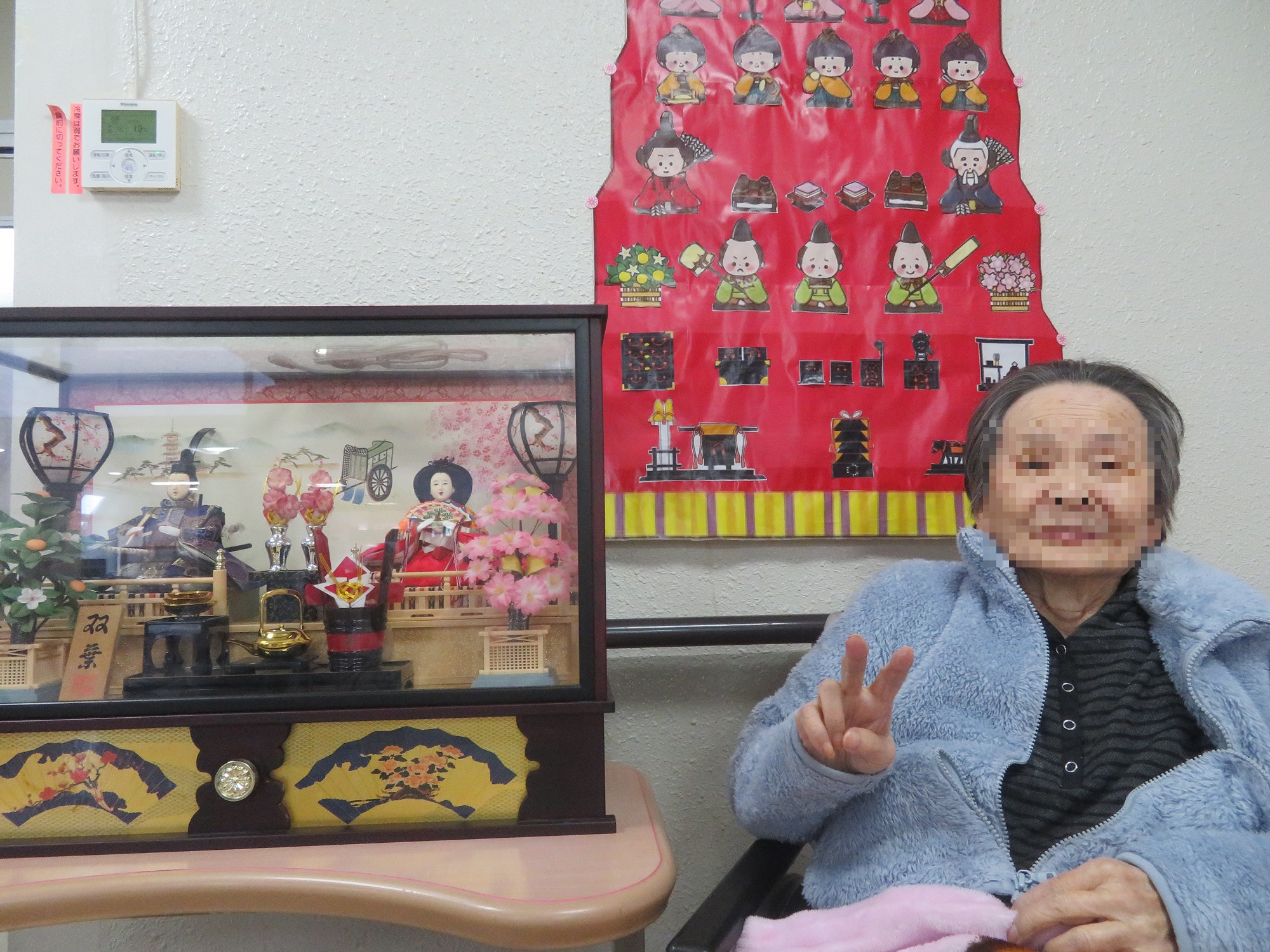 雛人形の前で記念撮影をしました