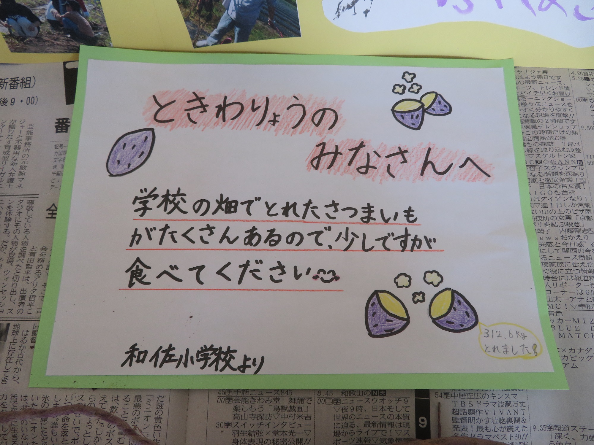 和佐小学校の畑でとれたさつまいもをたくさんいただきました
