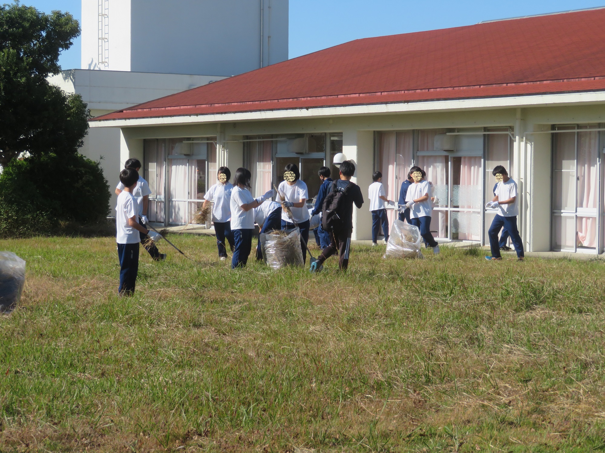 丹生中学校奉仕作業(園庭掃除と屋外窓拭き)