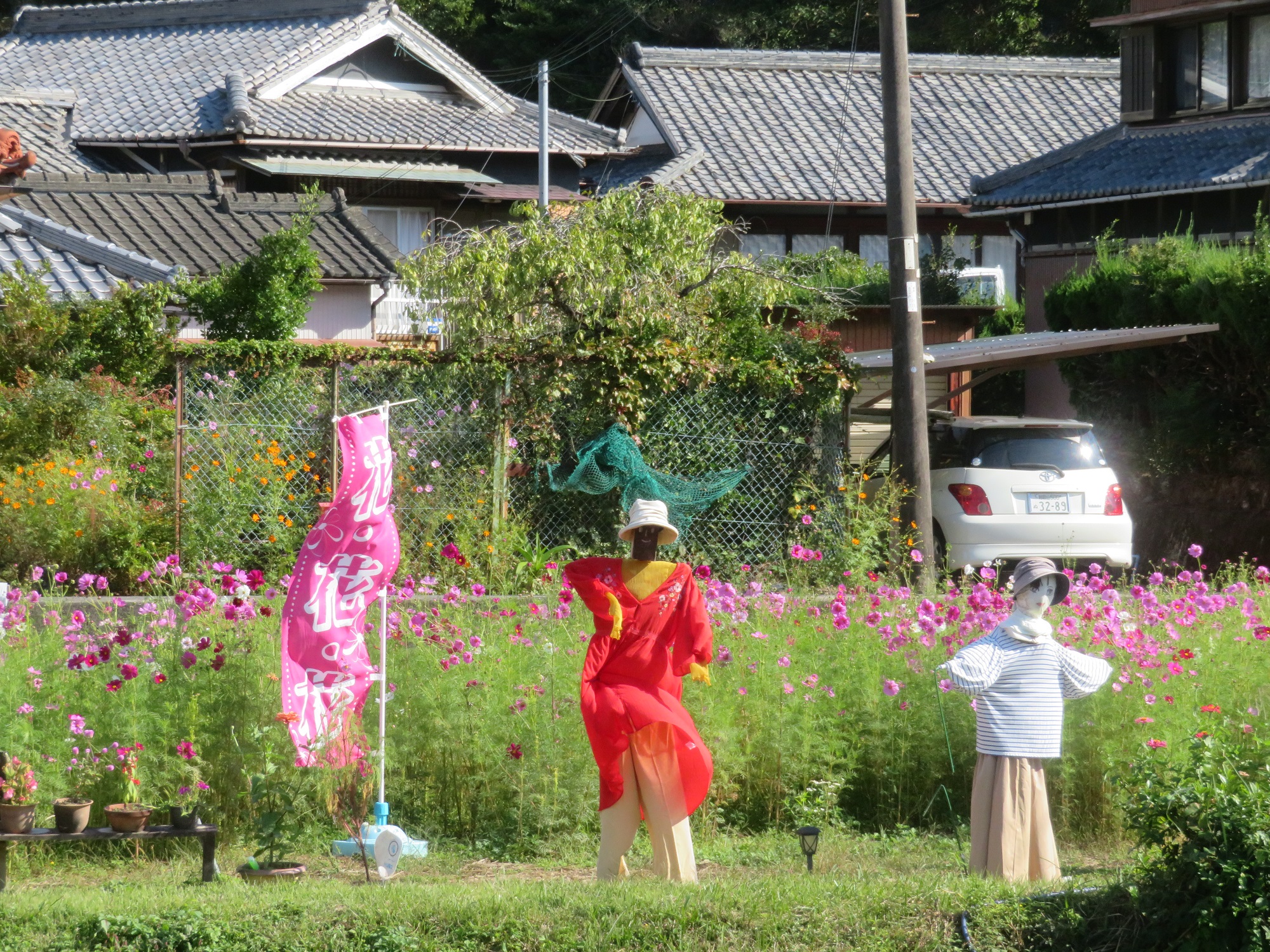 印南原で、かわいいユニークなかかしと秋風に揺れるコスモスを見学🌼