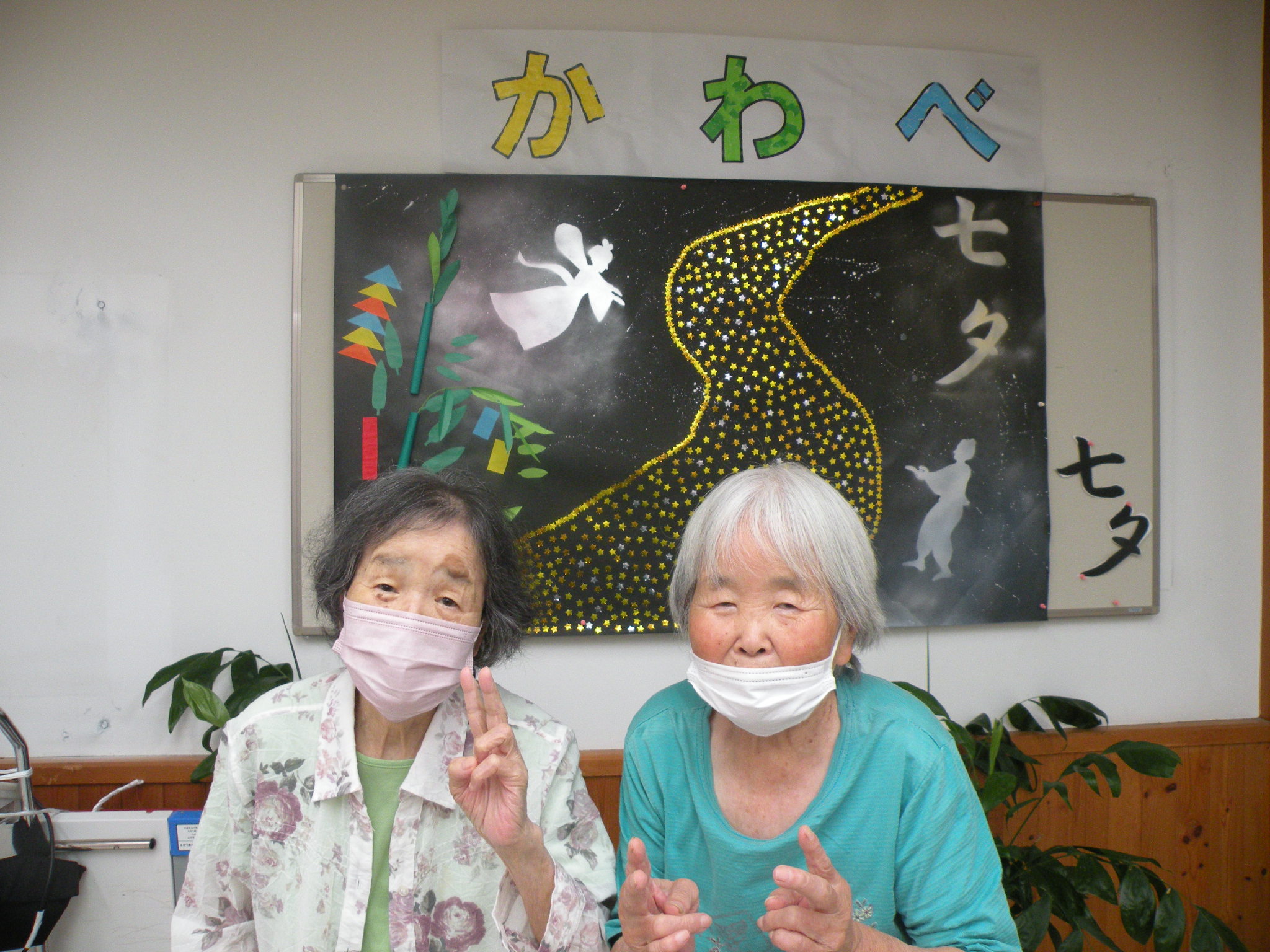 天の川はたくさんの星を散りばめて幻想的な織姫と彦星がデイルームを華やかに(*^^*)