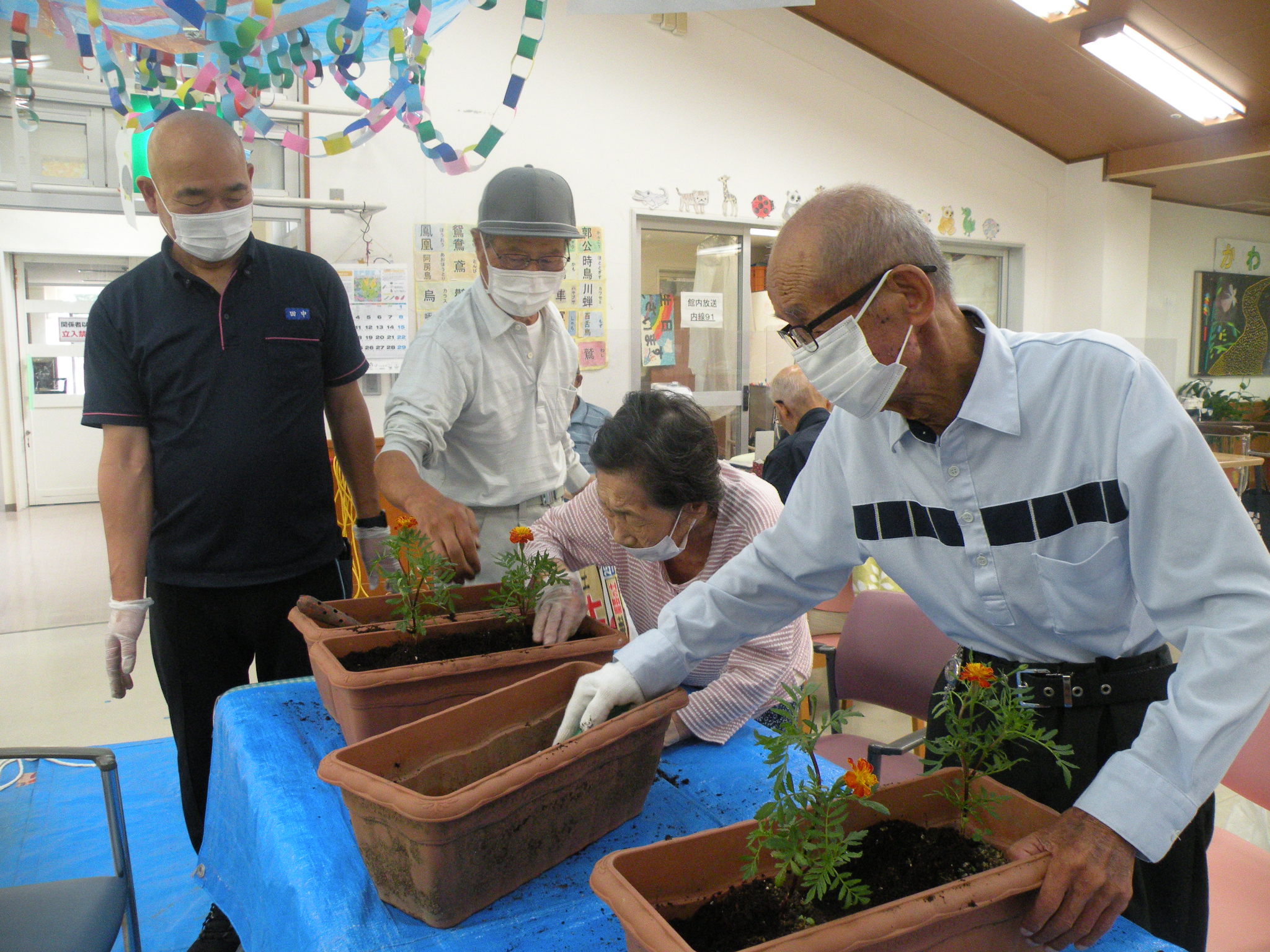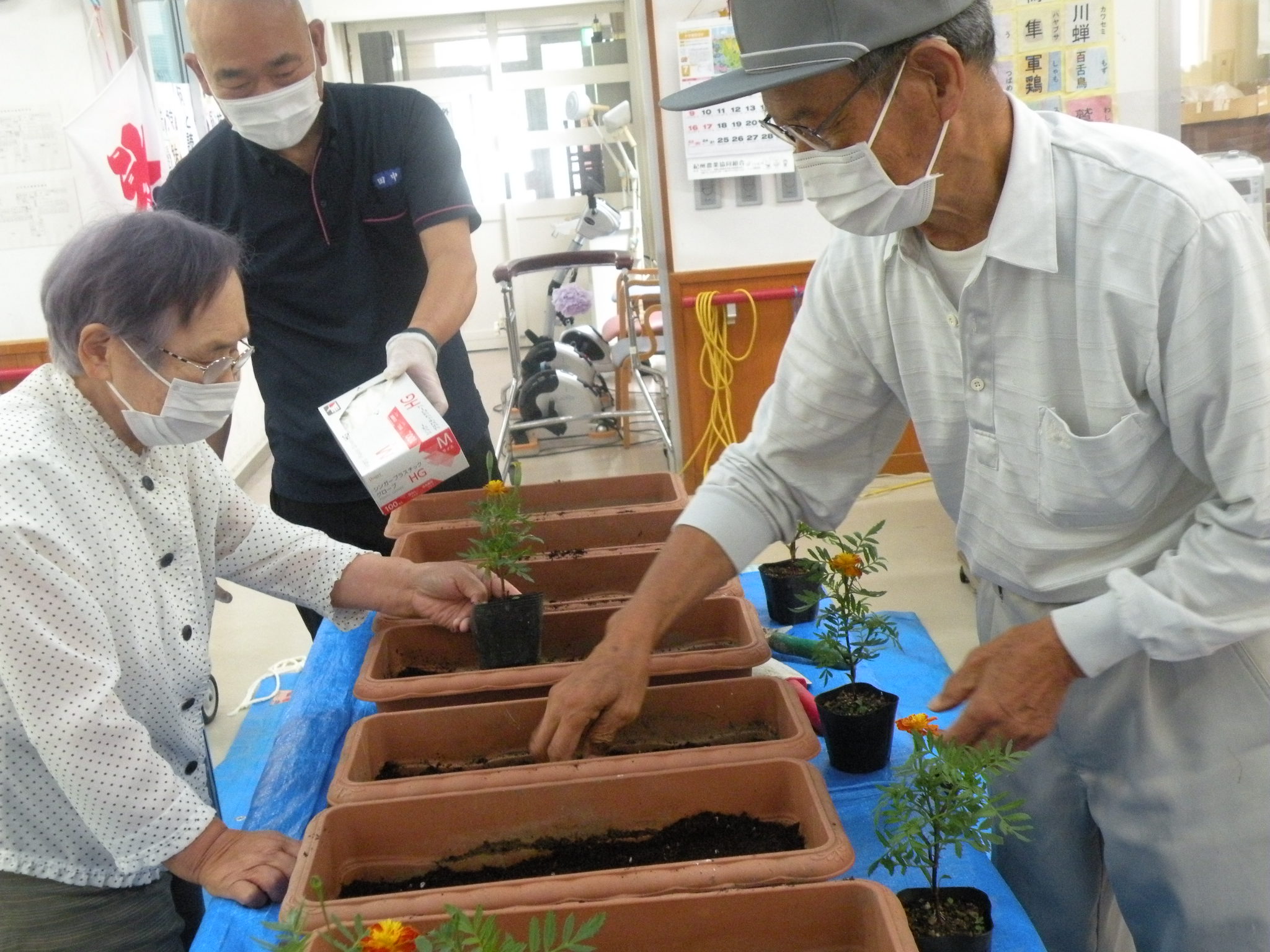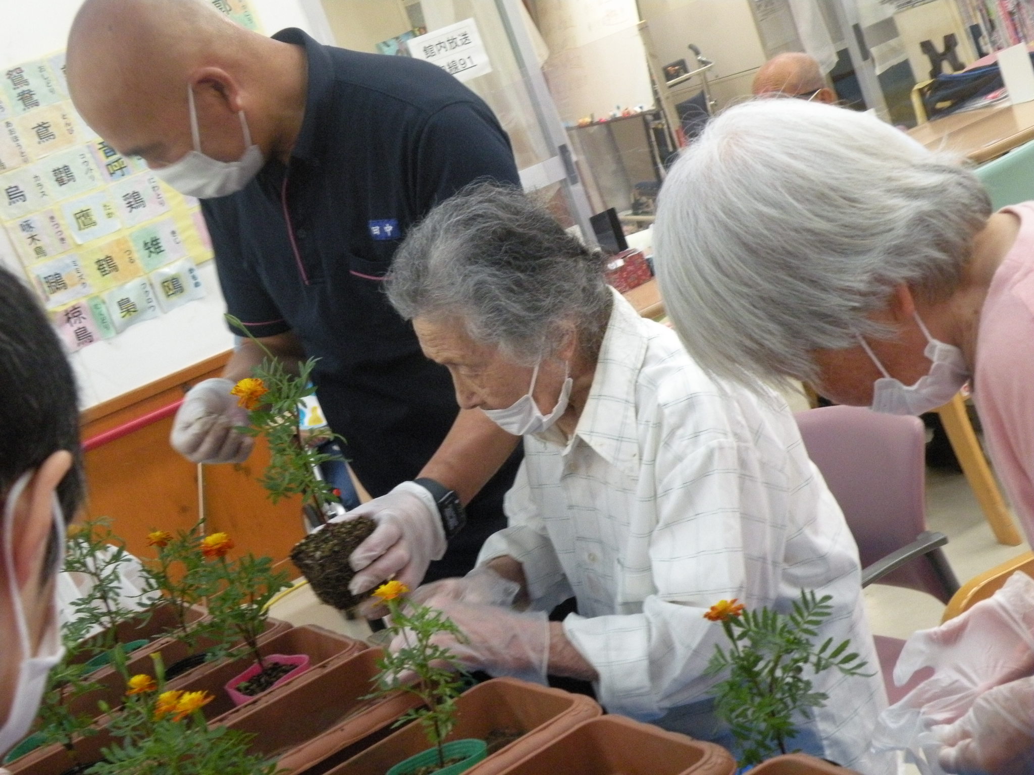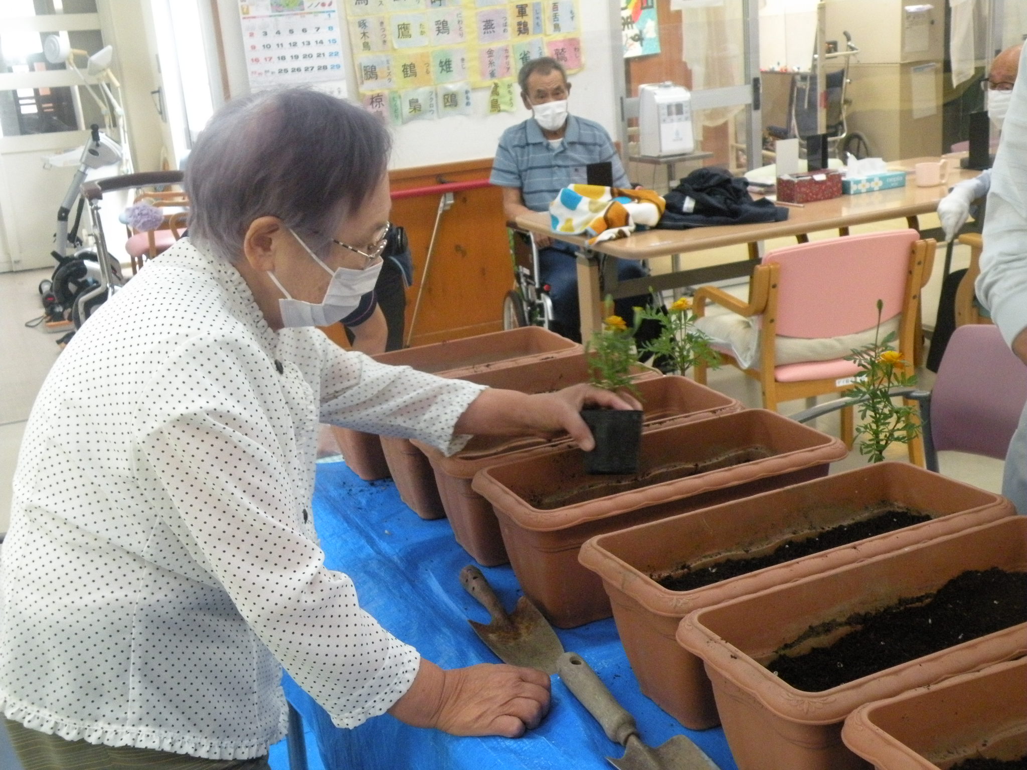 プランターをデイルームに運んで作業開始!(о´∀`о)