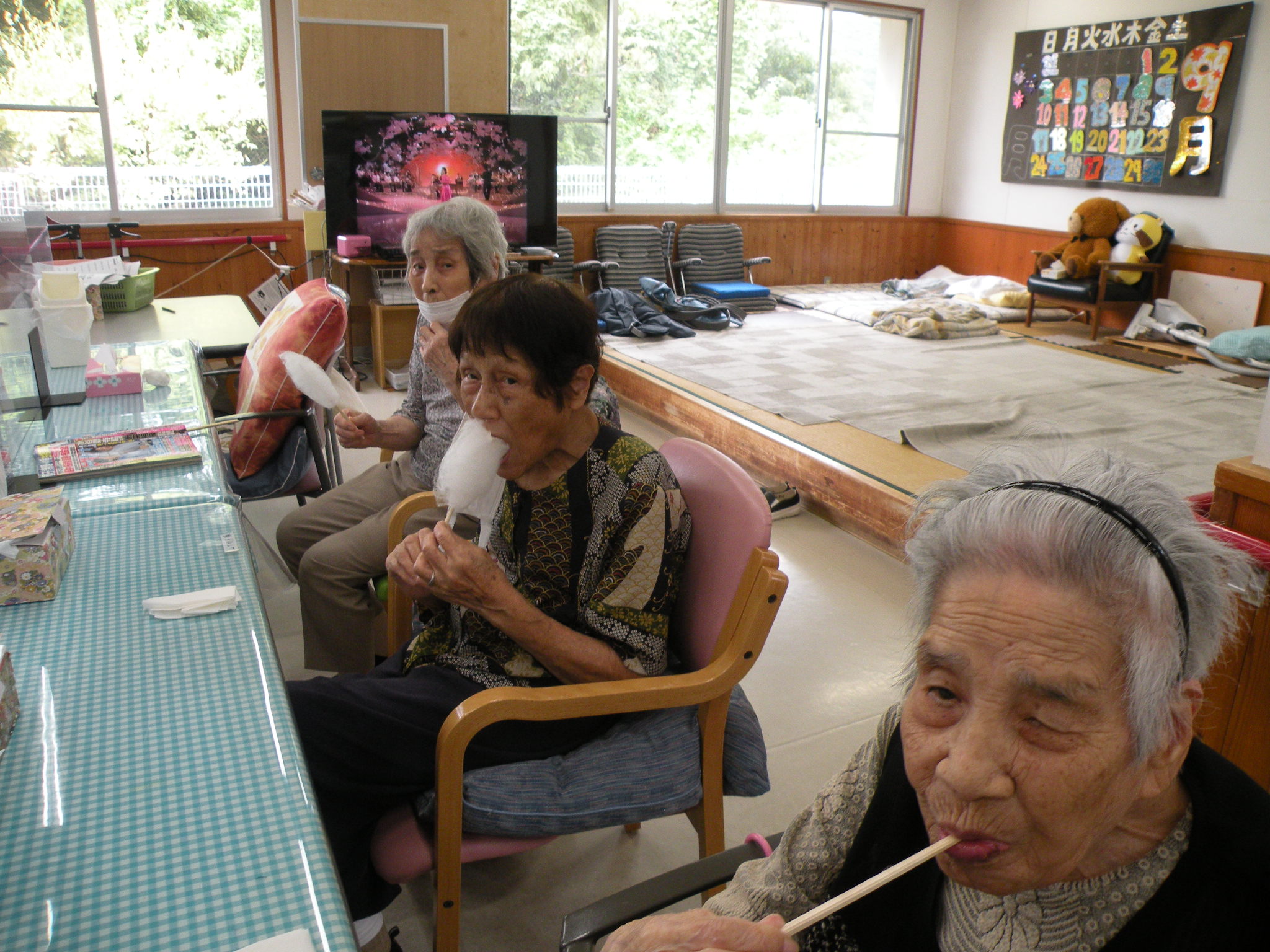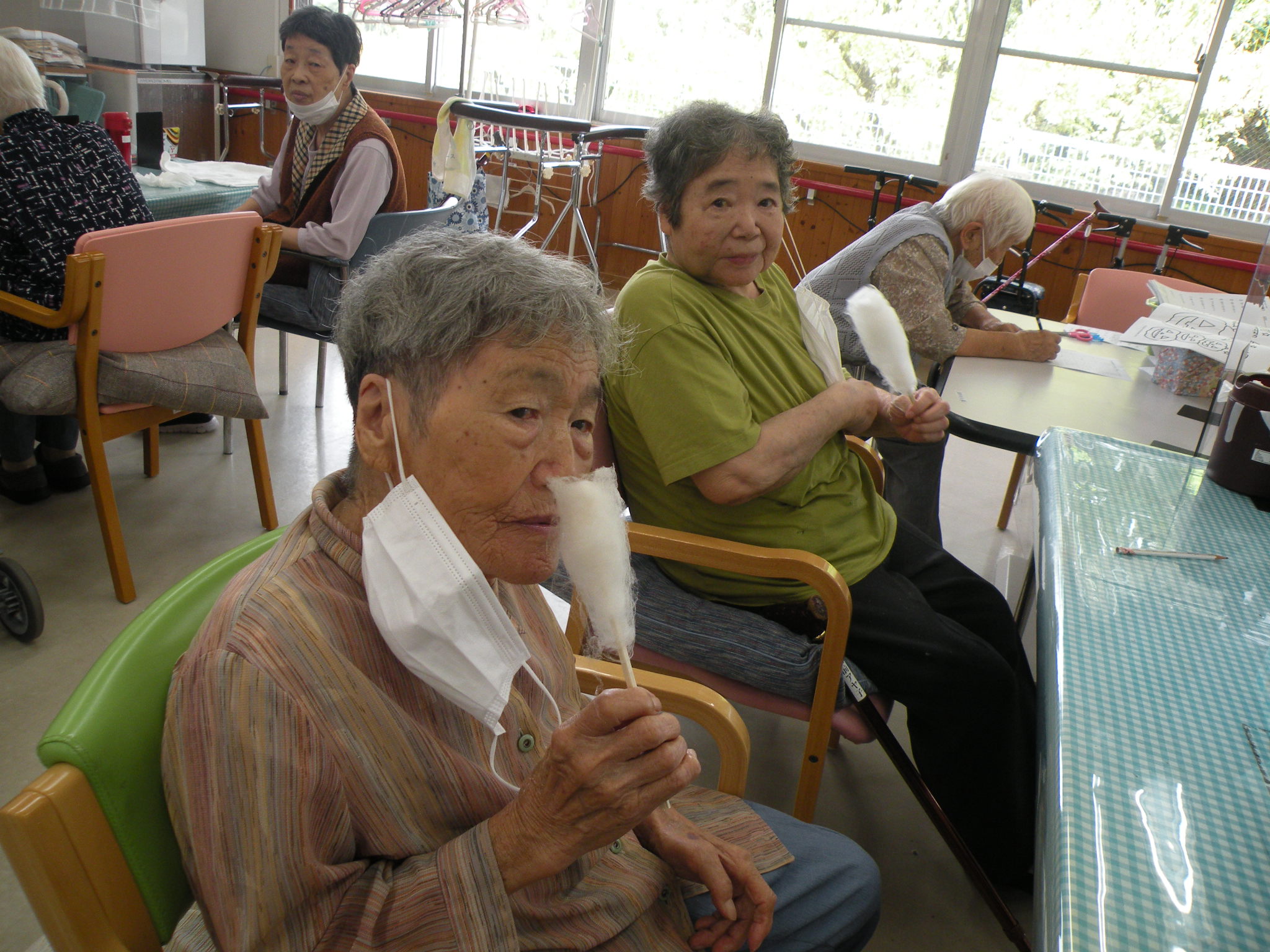 利用者様にも作って頂き、デイルームはお砂糖のあま〜〜〜ぃにおいでいっぱいです🍭(*´∀`*)🍭
