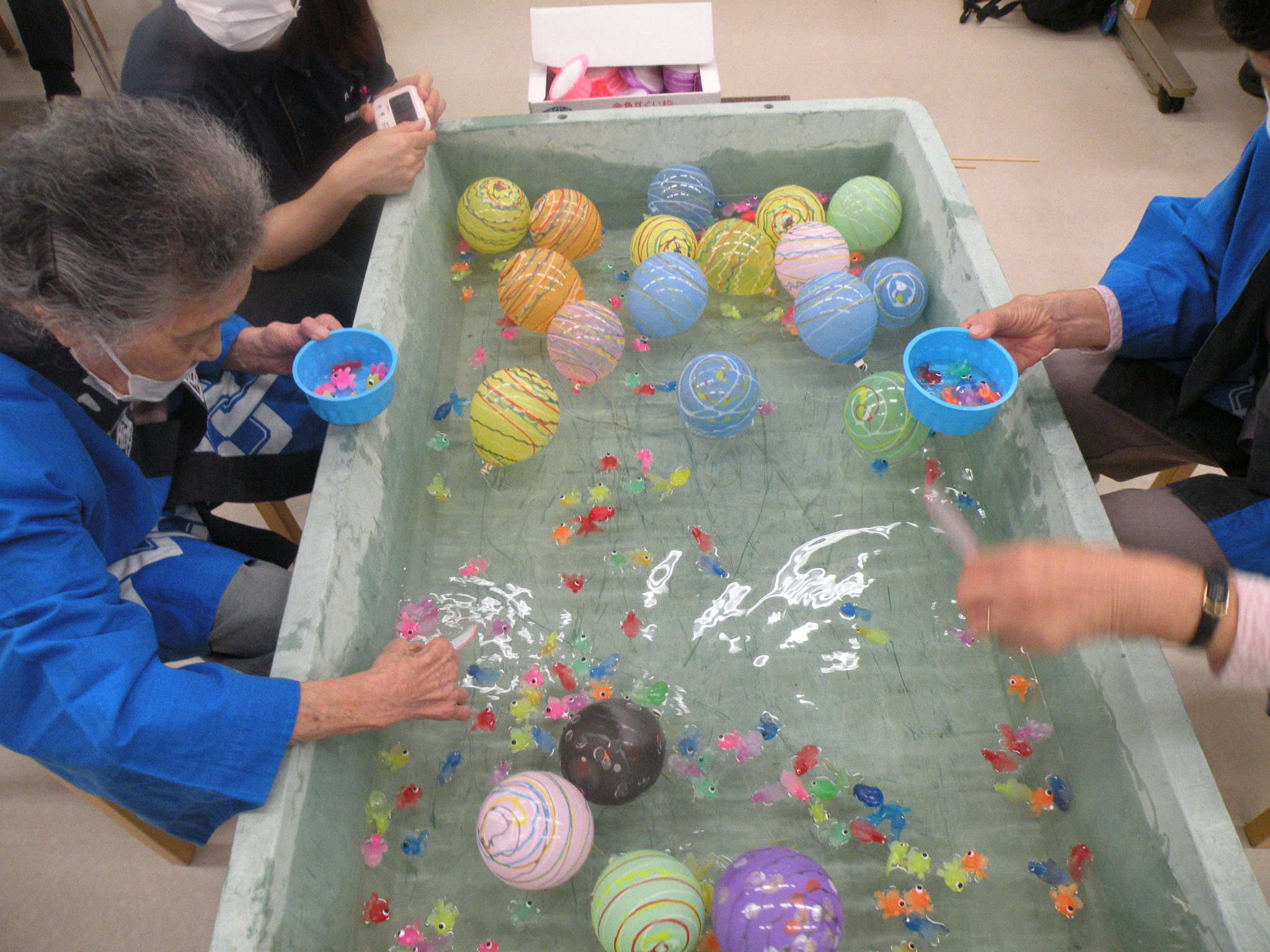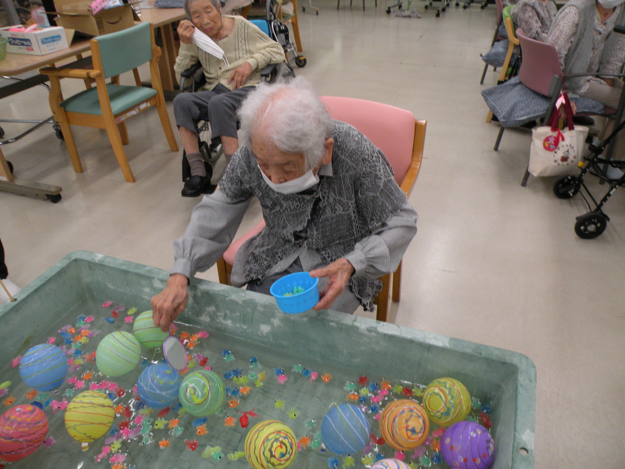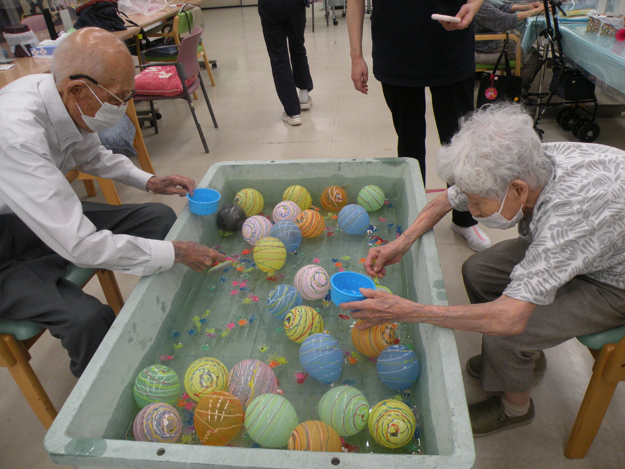 今月のレクリエーションでヨーヨー釣りと金魚すくいゲームを開催しました\(^o^)/✨