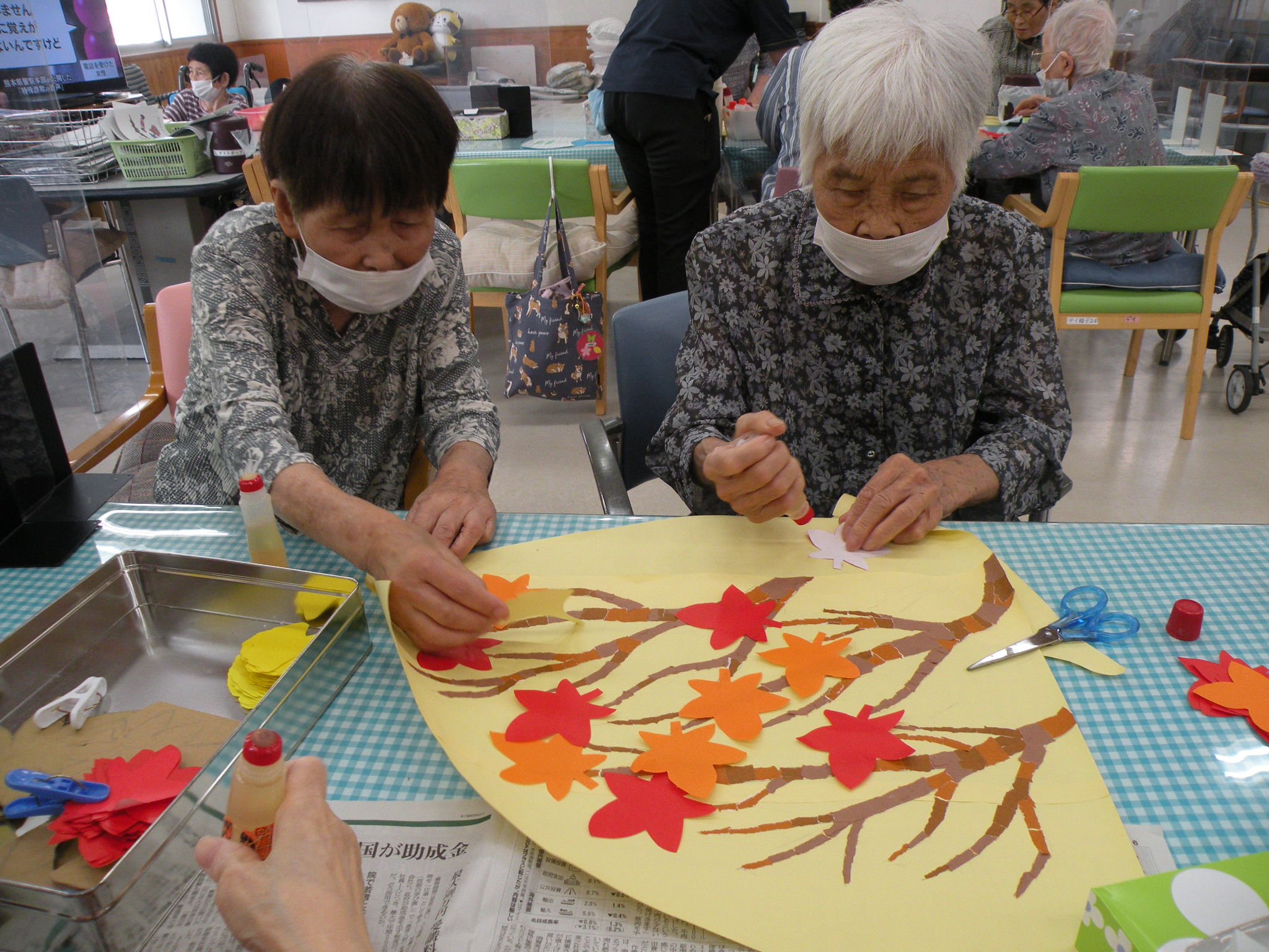 🍁紅葉やイチョウを貼って壁飾り🍁