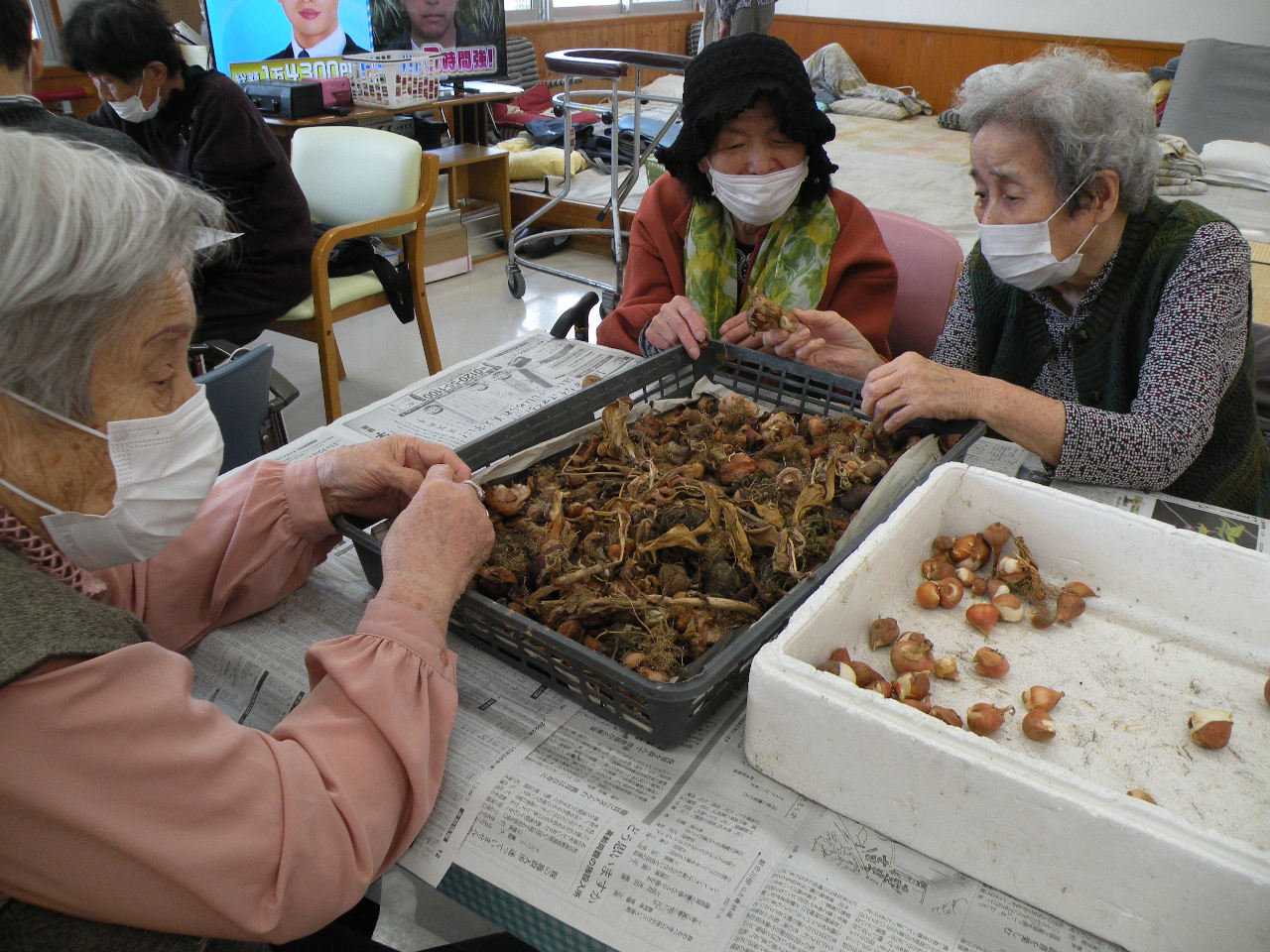 本日は午前中にチューリップ球根の選別作業をしていただきました(^^)