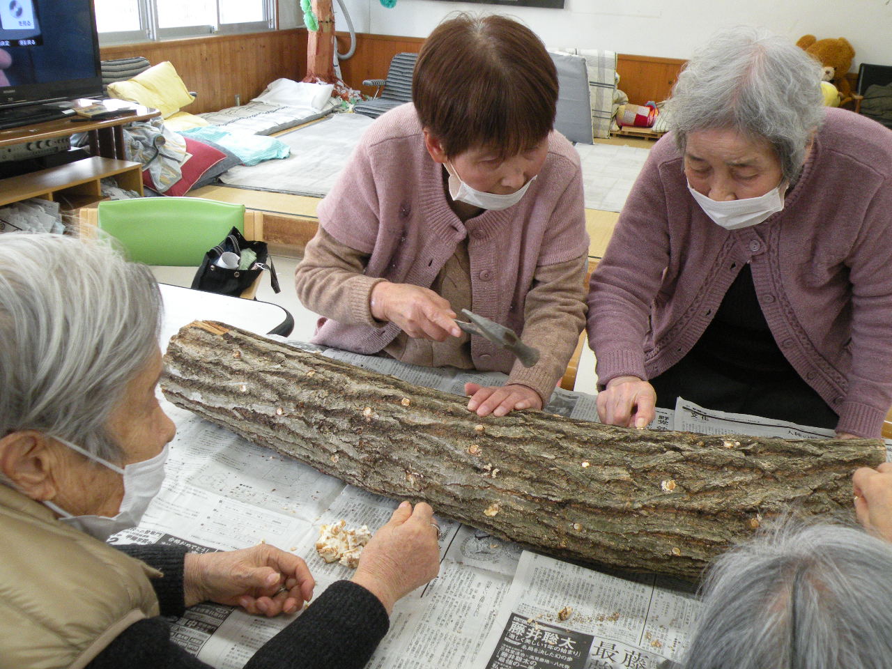 利用者様の中にはしいたけ栽培の経験者が多く、