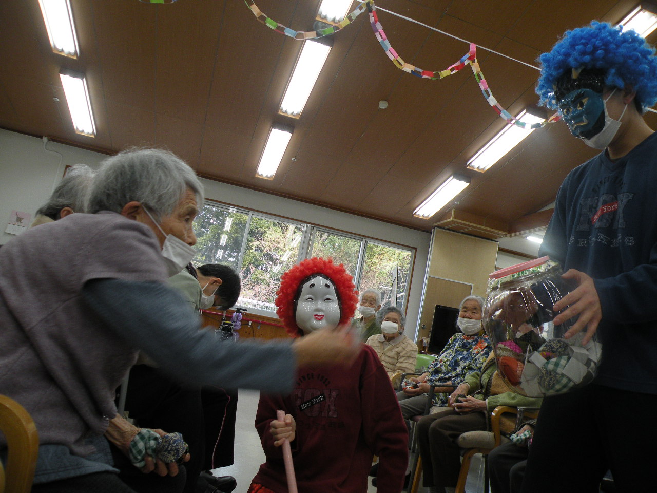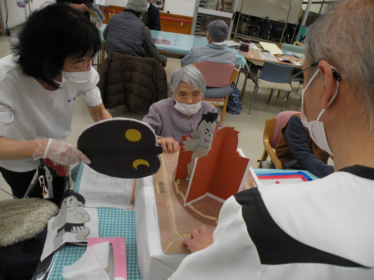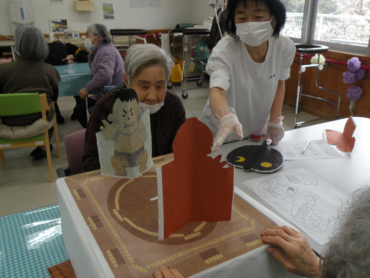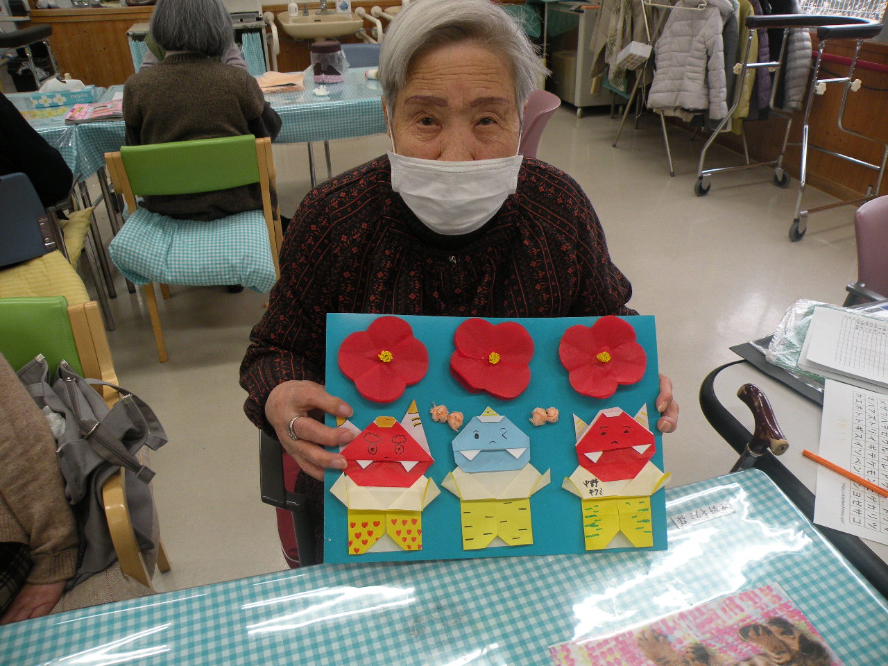 かわいい鬼サンがたくさんできて、デイルームの壁に飾っております(^O^)