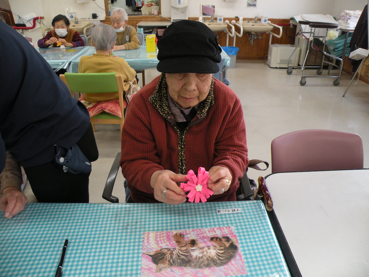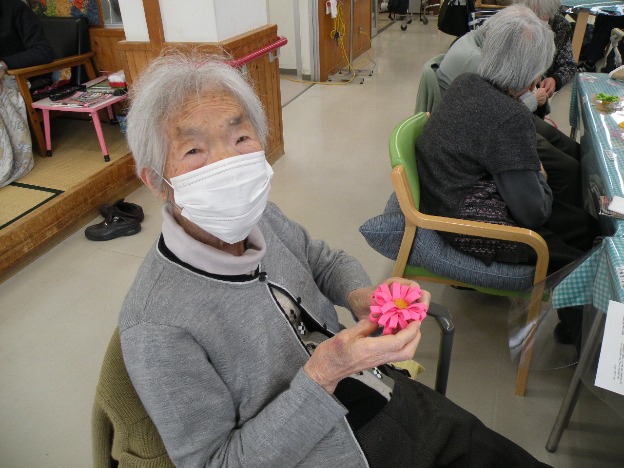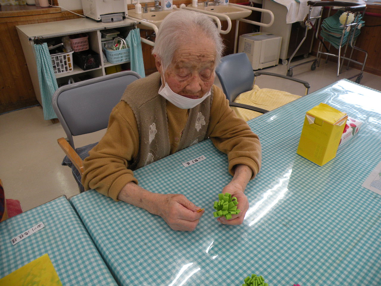 今月の行事にて、皆様とコサージュ作りをしました(*^^*)