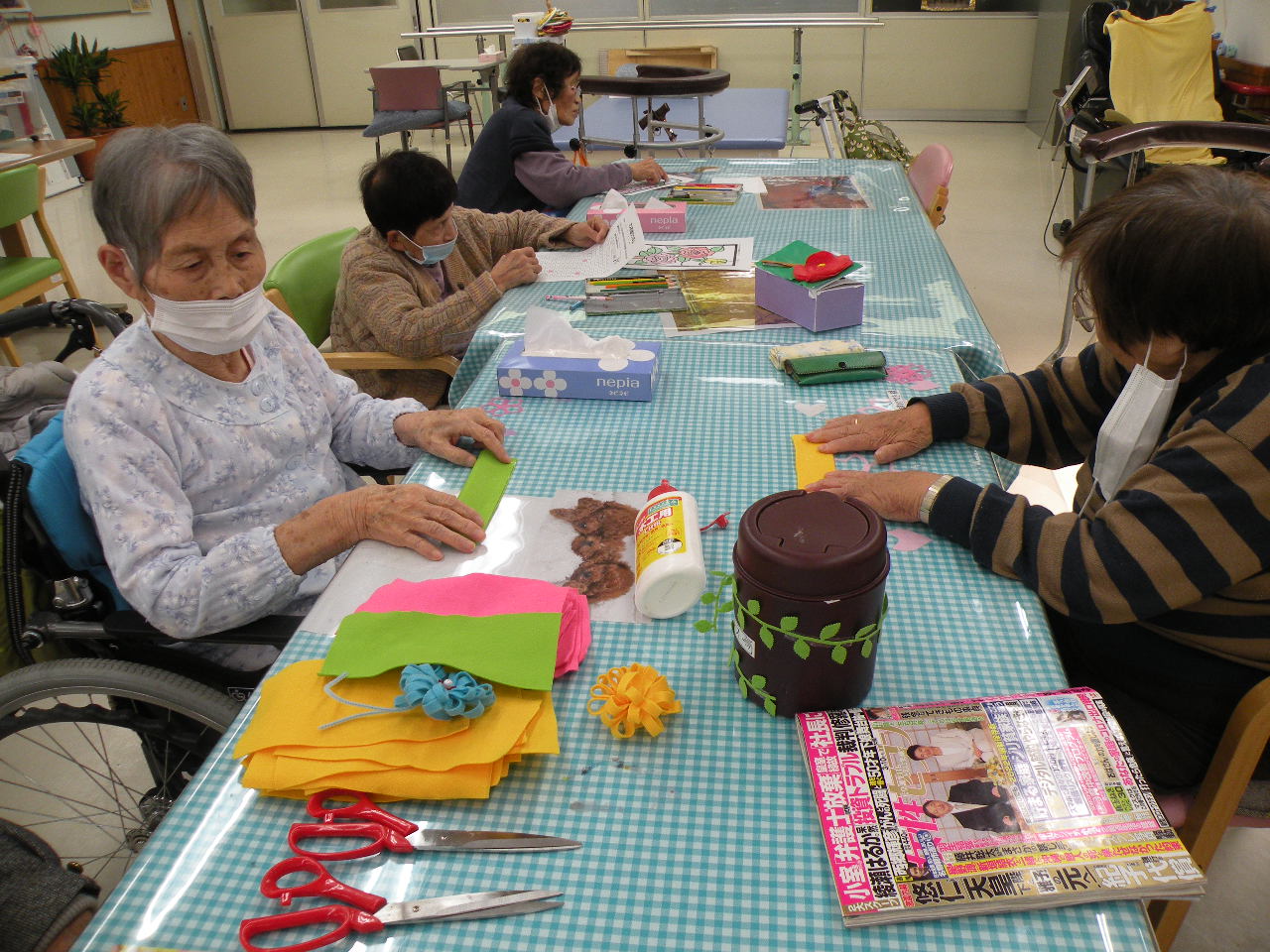 デイルームではクラフト制作に熱が入っております(*´∀`*)