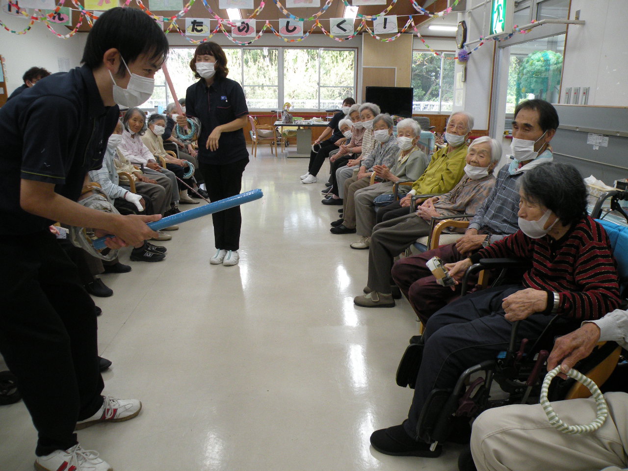 おやつ後は職員からの催しで手品や髭ダンスを披露し、