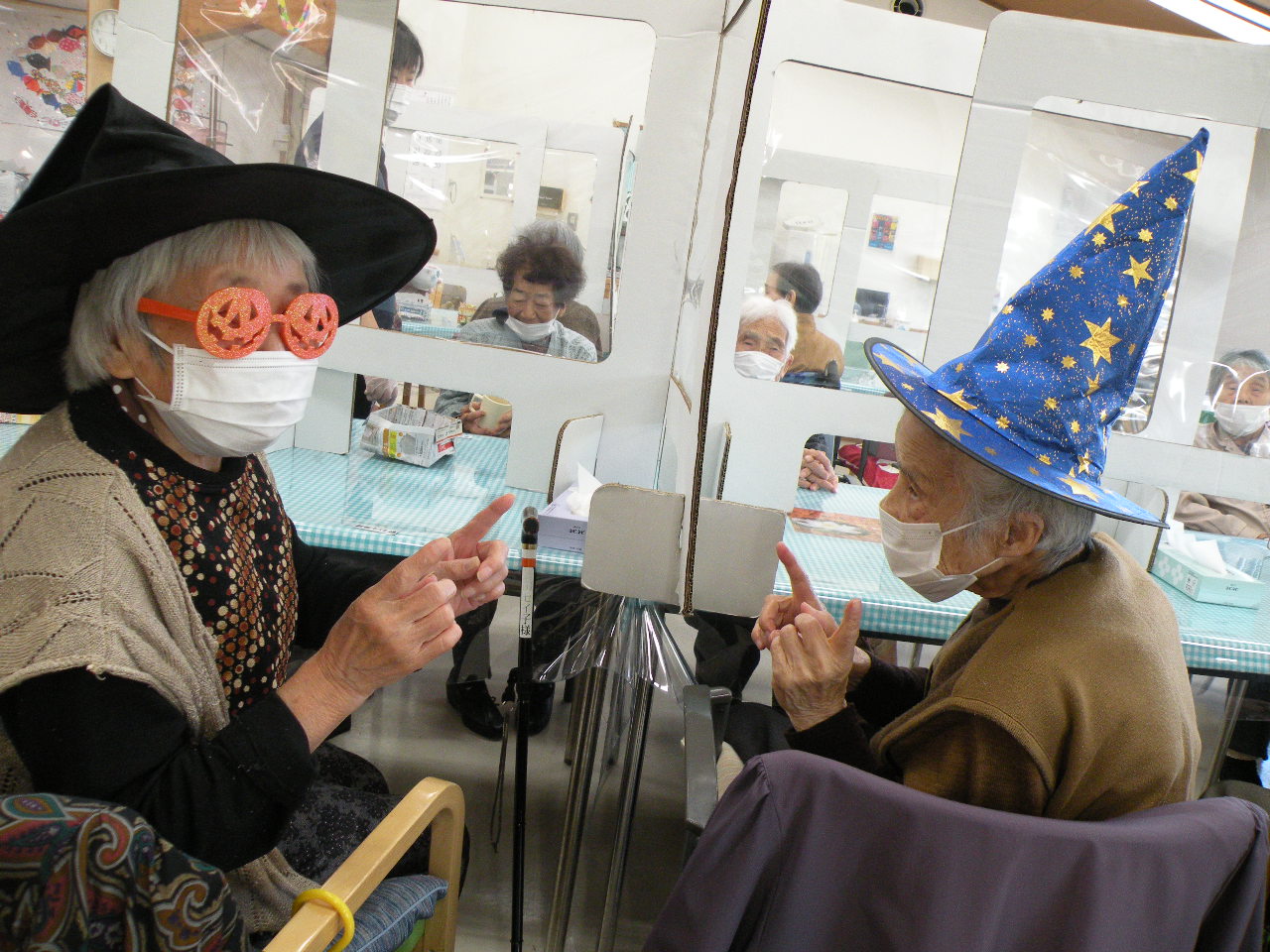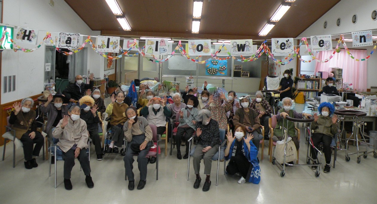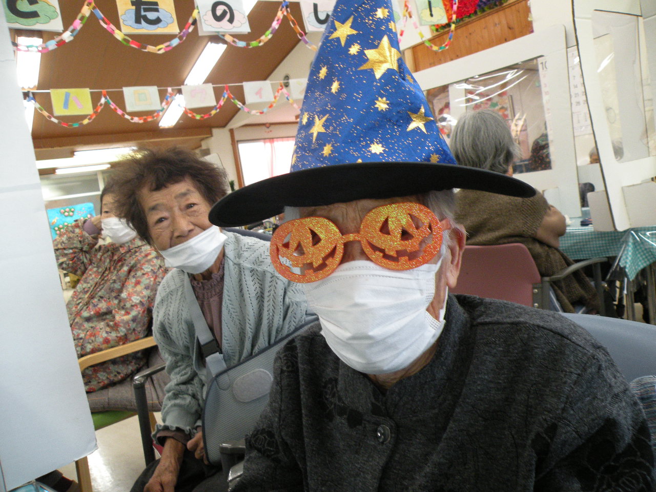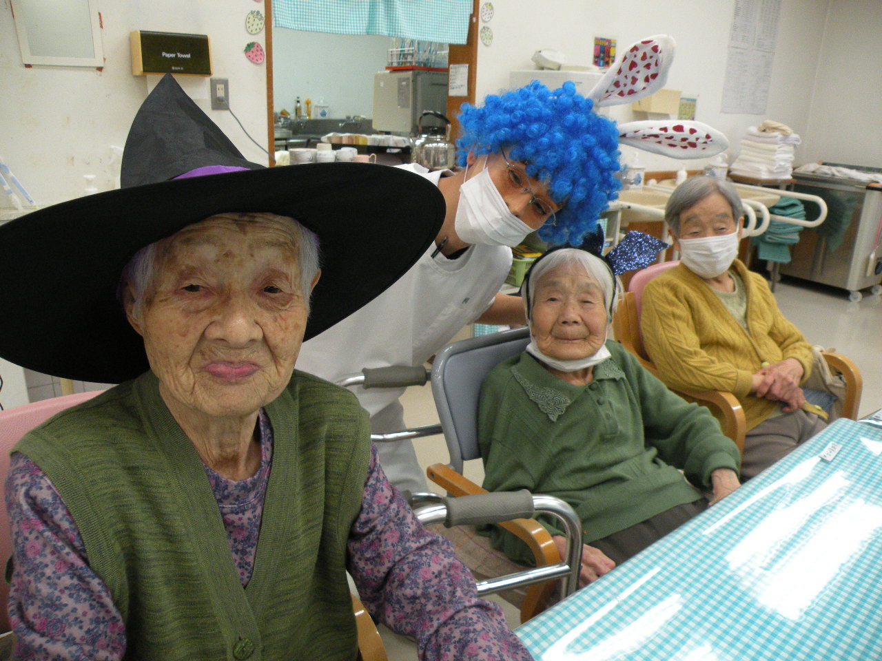 デイサービスでは皆様にも仮装していだき、おやつにお菓子を食べました\(^o^)/