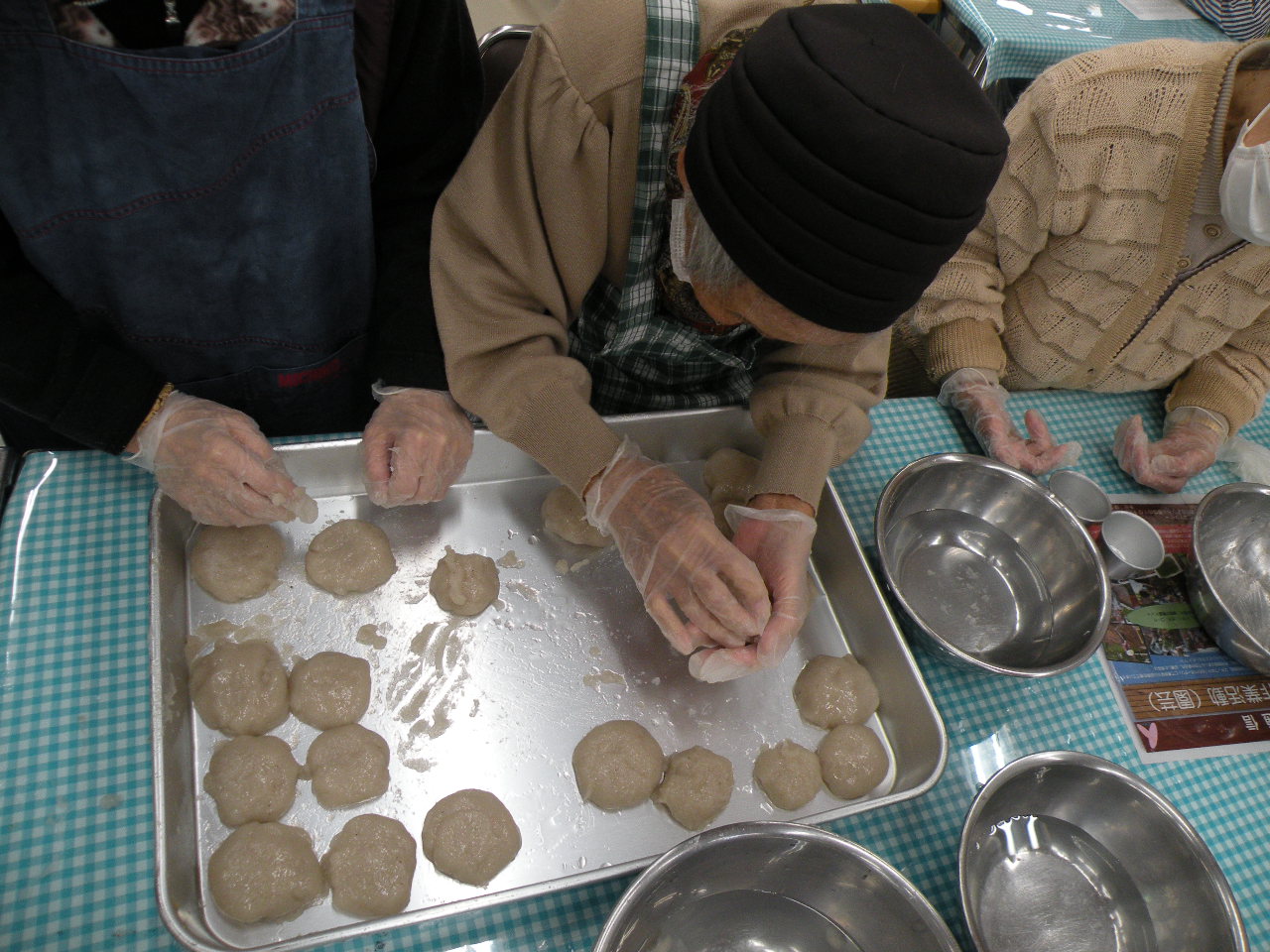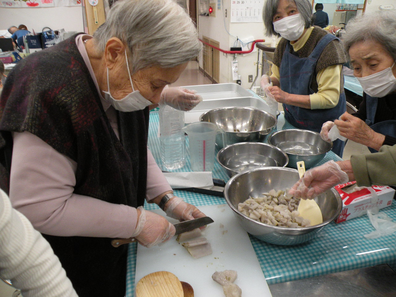 皆様と一緒に皮をむいたり、ミキサーにかけたり