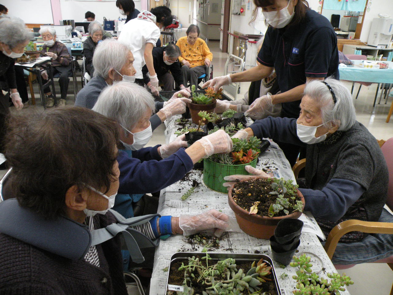 色んな種類の花や多肉植物の寄植えを行いました(^^♪