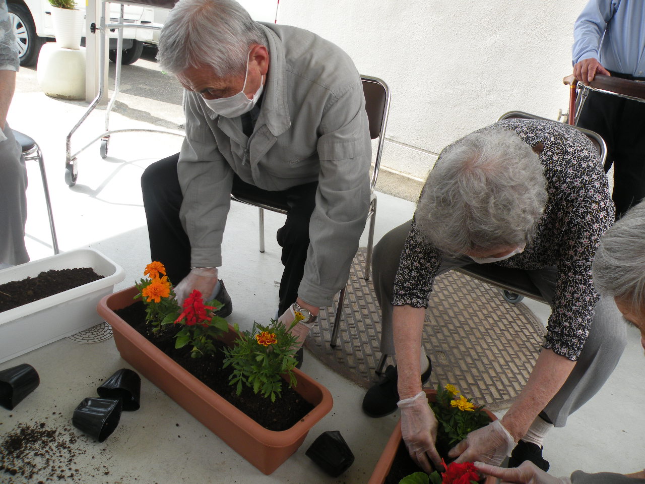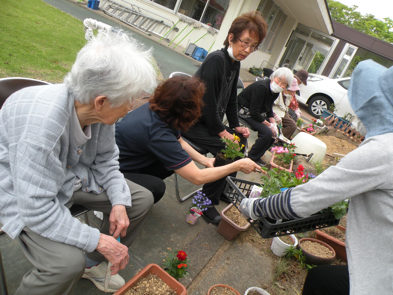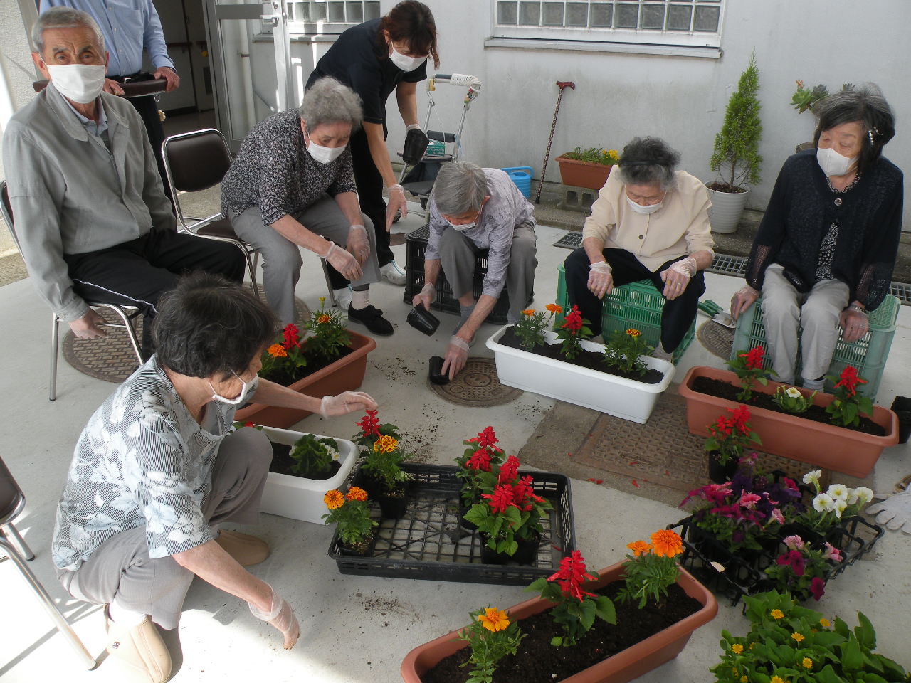 天気も良く、本日は皆さんと花を植えました(^^)♪