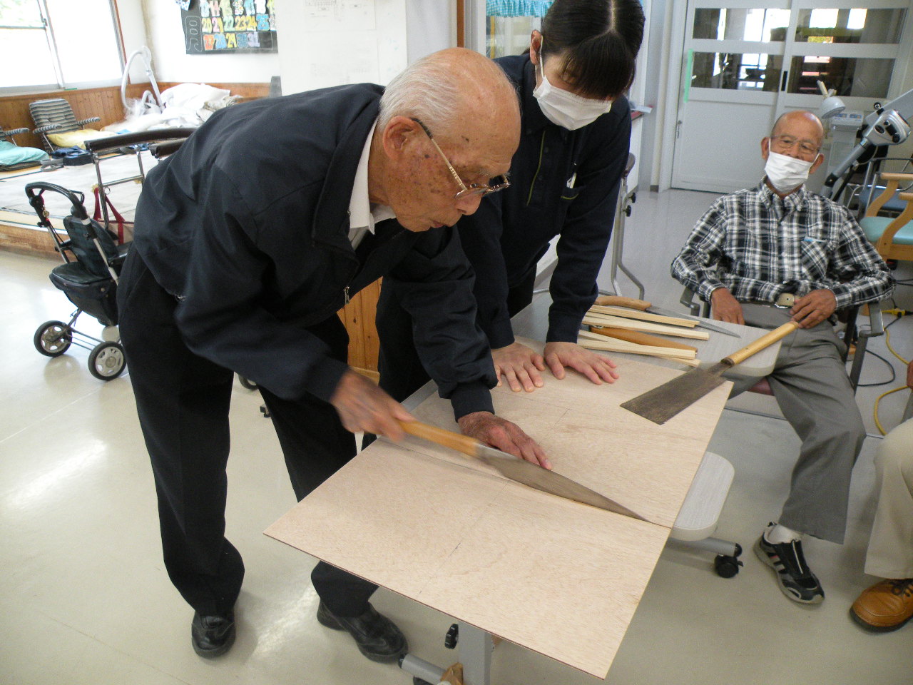 今月は男性の方を中心に木工クラブを結成し、看板づくりを行いました(^O^)