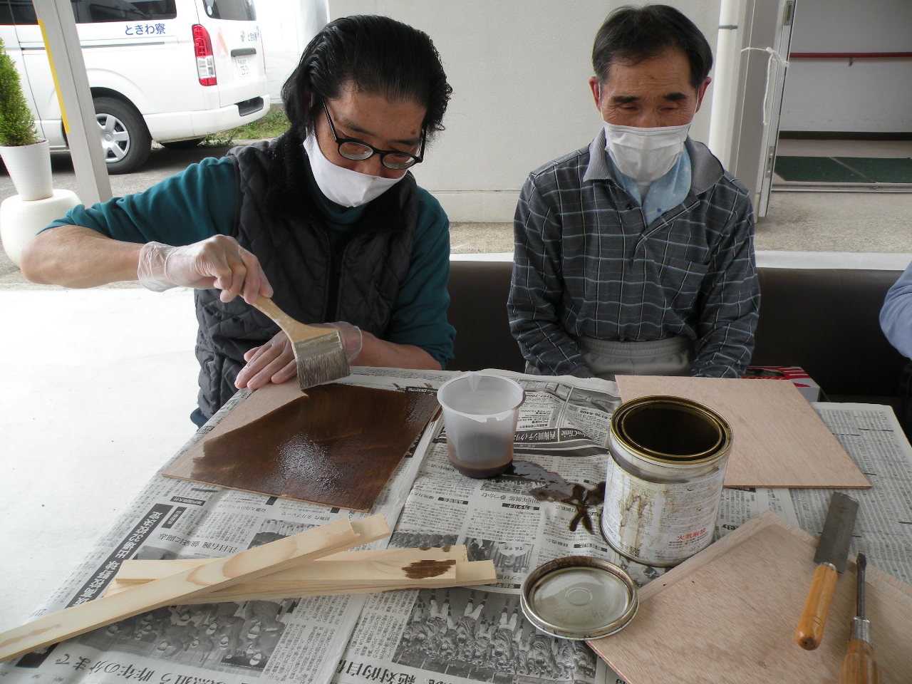 のこぎりを使って板を切っていただき、ペンキを塗る作業もスムーズです(*^-^*)