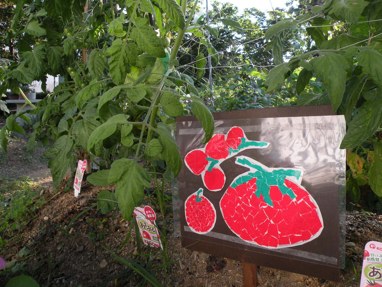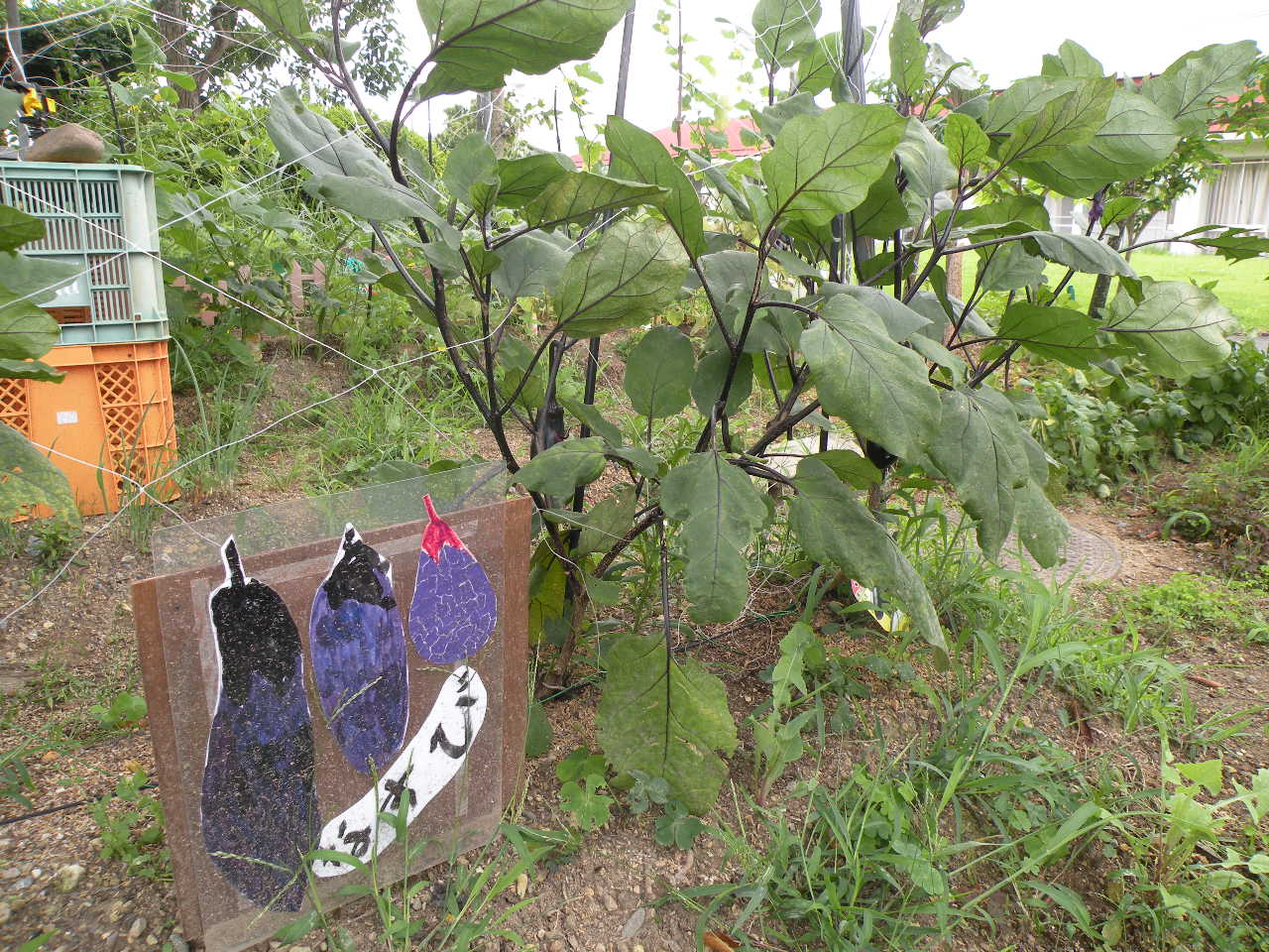 出来上がった看板は川辺園玄関の畑にて設置しています(*^▽^*)