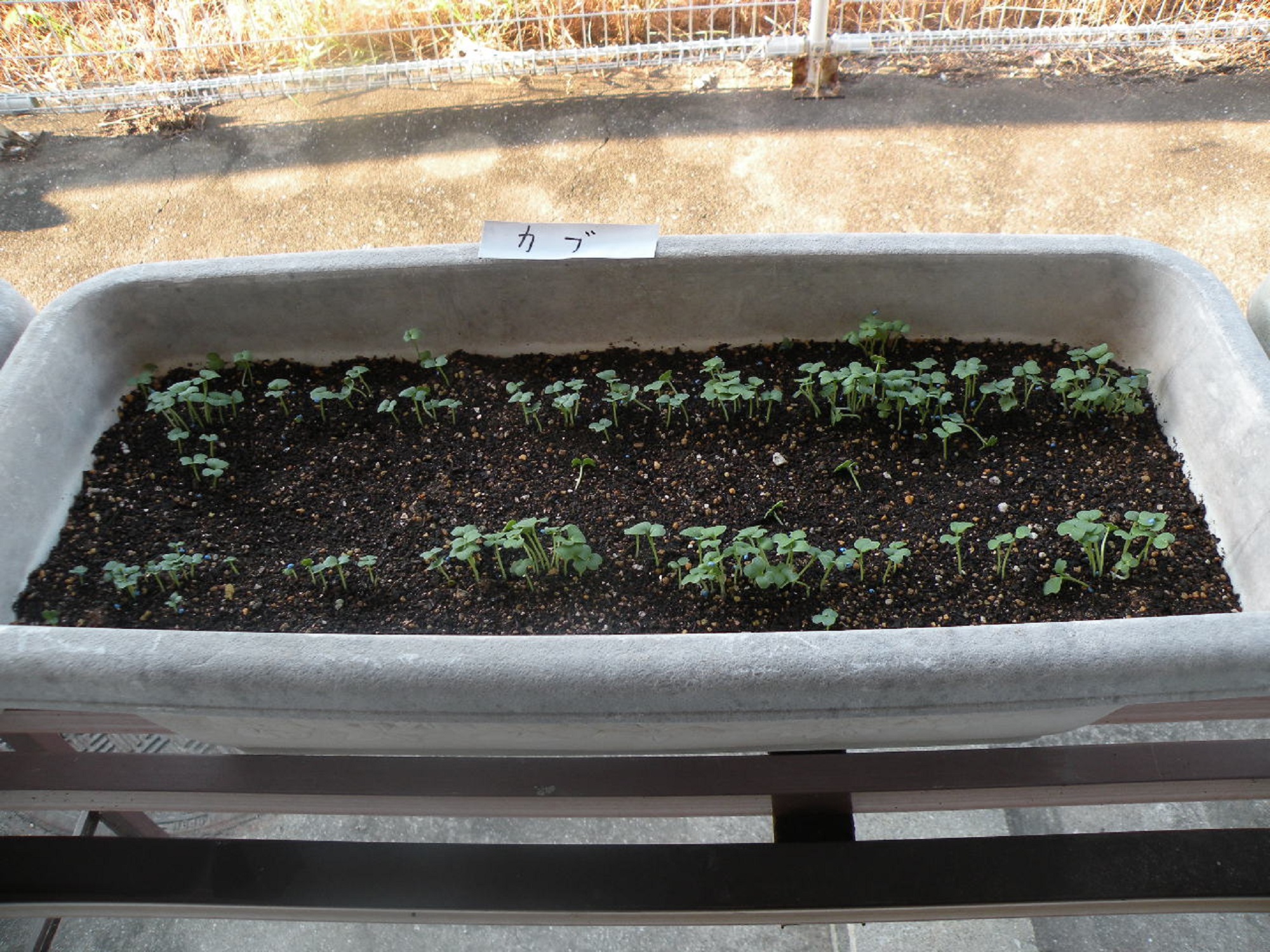 最近、皆さんで植えたカブと人参🥕が芽をだしました\(^o^)/