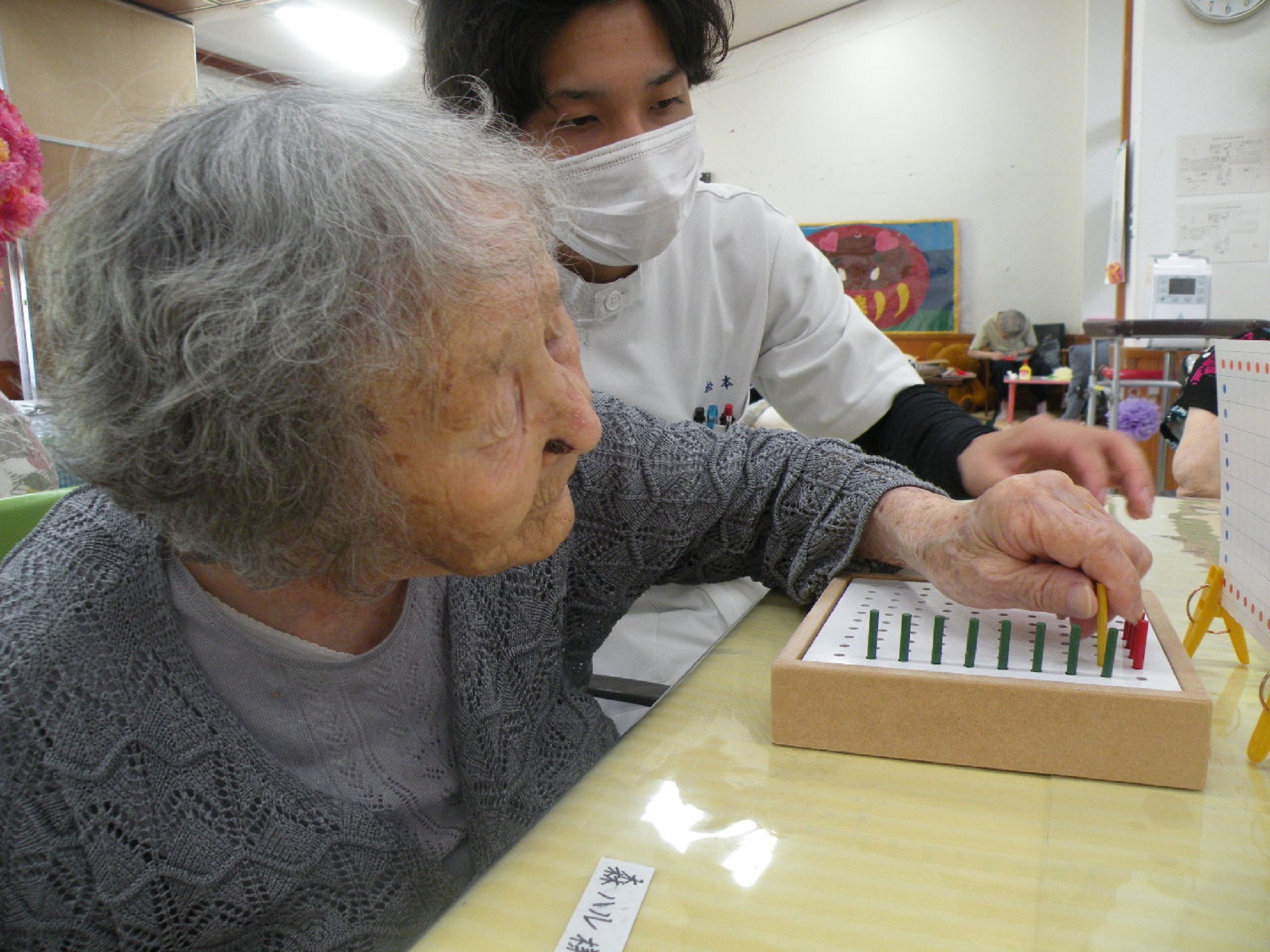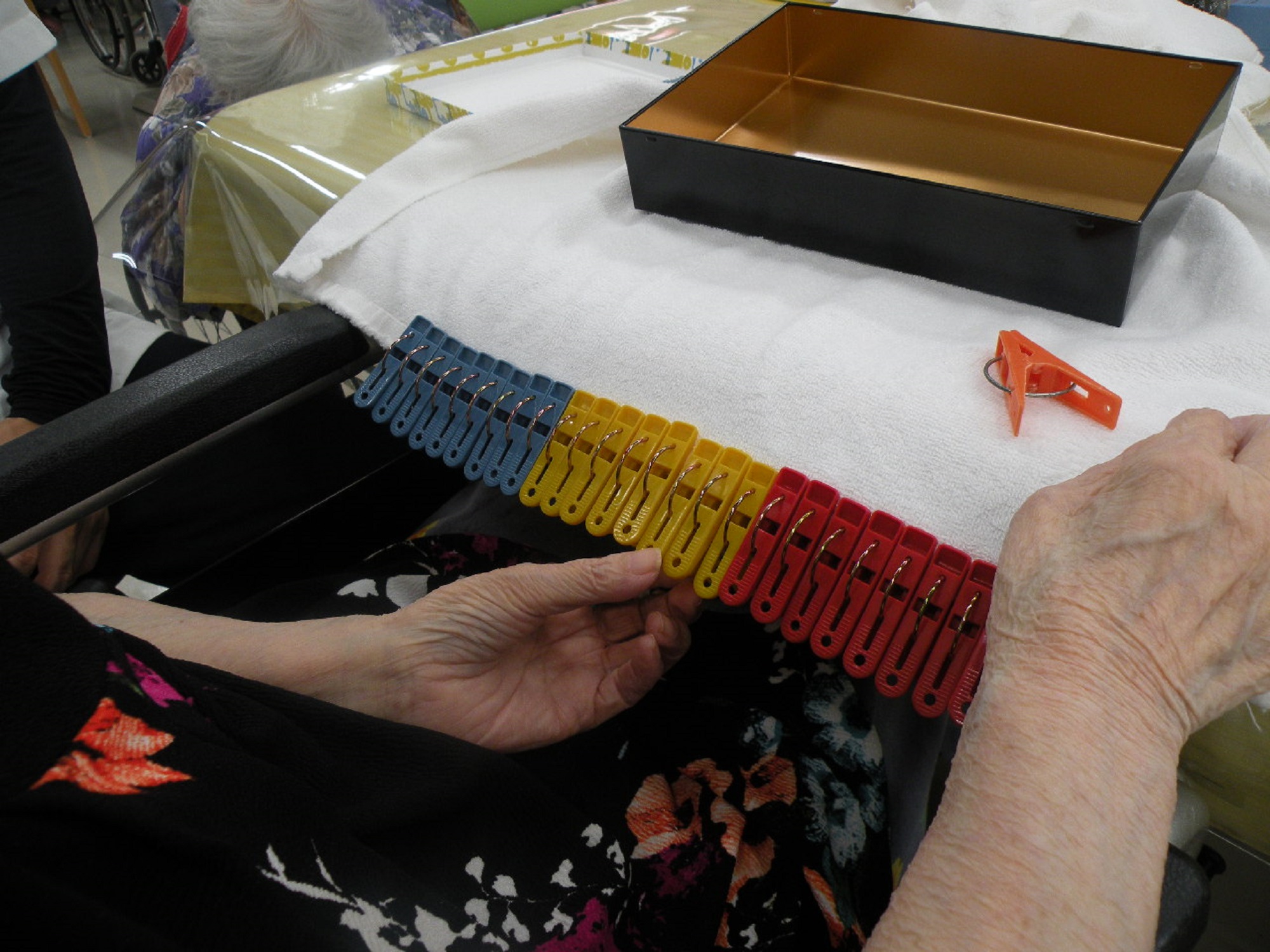 川辺園では認知症予防のために、手指を使った細かい作業活動も行っています。