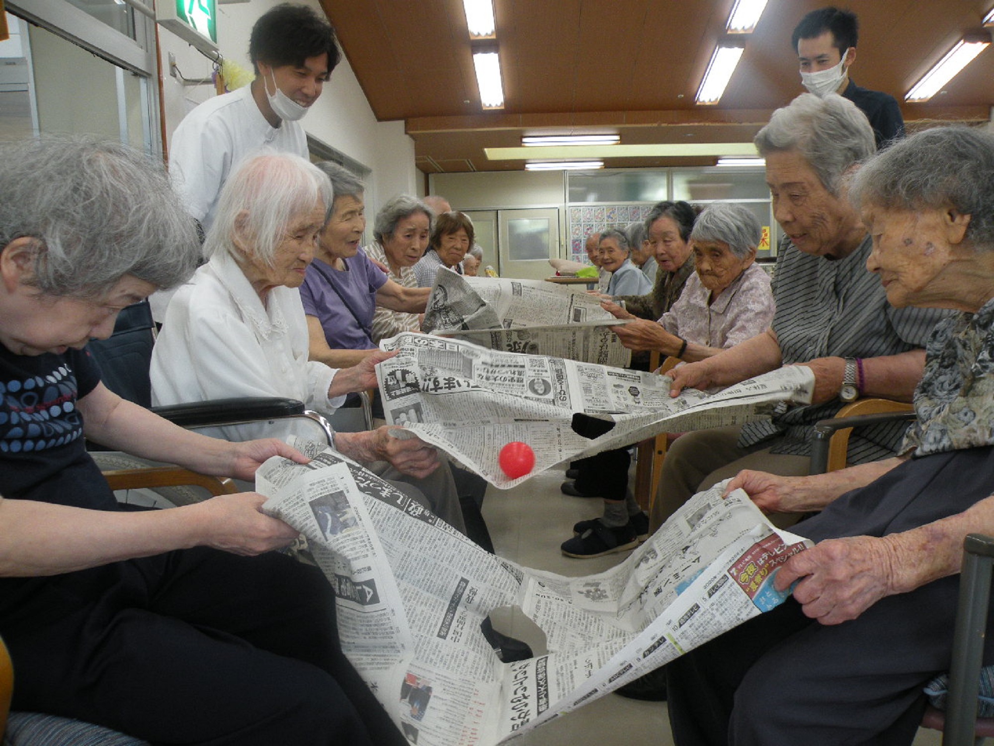 ↓写真は集団リハビリで新聞紙を使ってレクリエーション☆