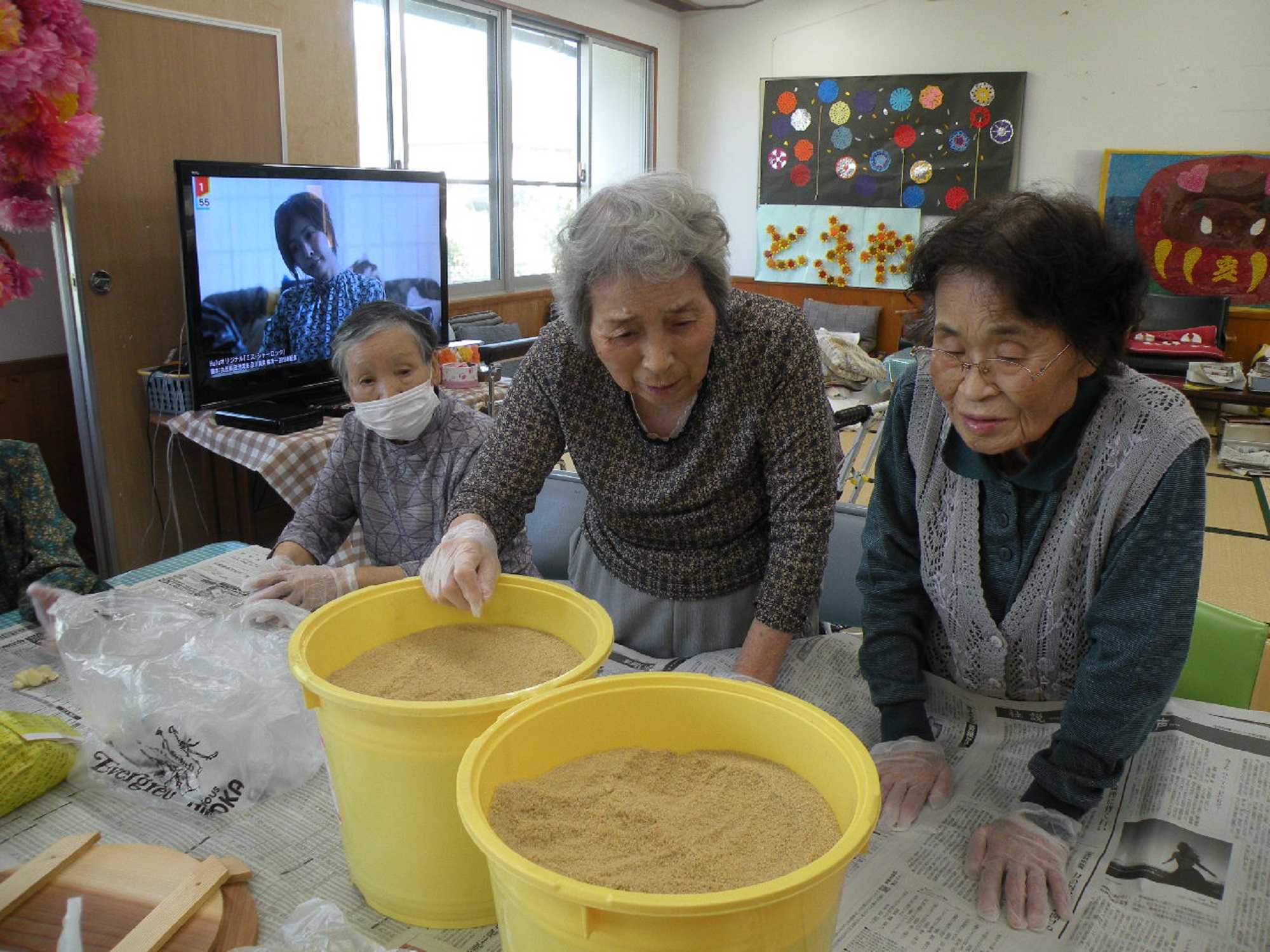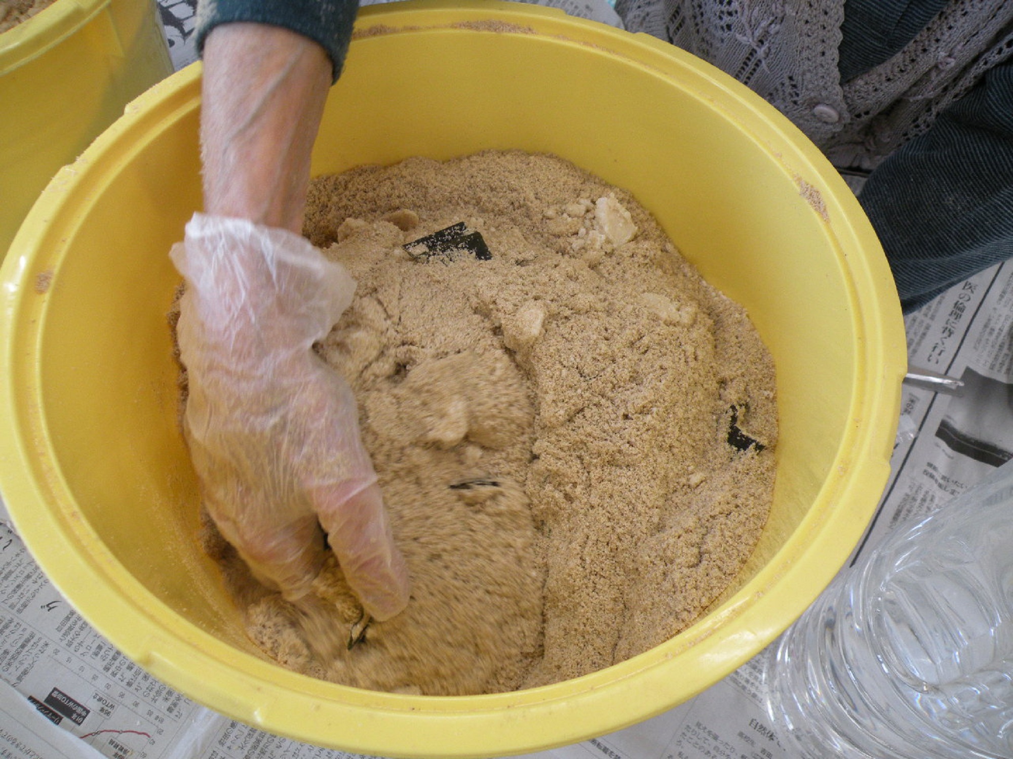 利用者様はそれぞれぬか床の作り方を話し合いながら