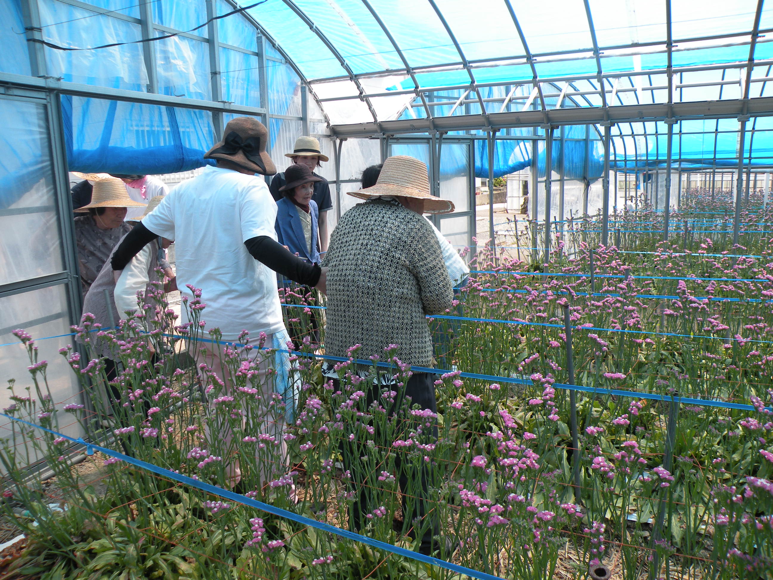 ハウス一面に咲き誇っているスターチスを見て、みなさん口々に「綺麗や」