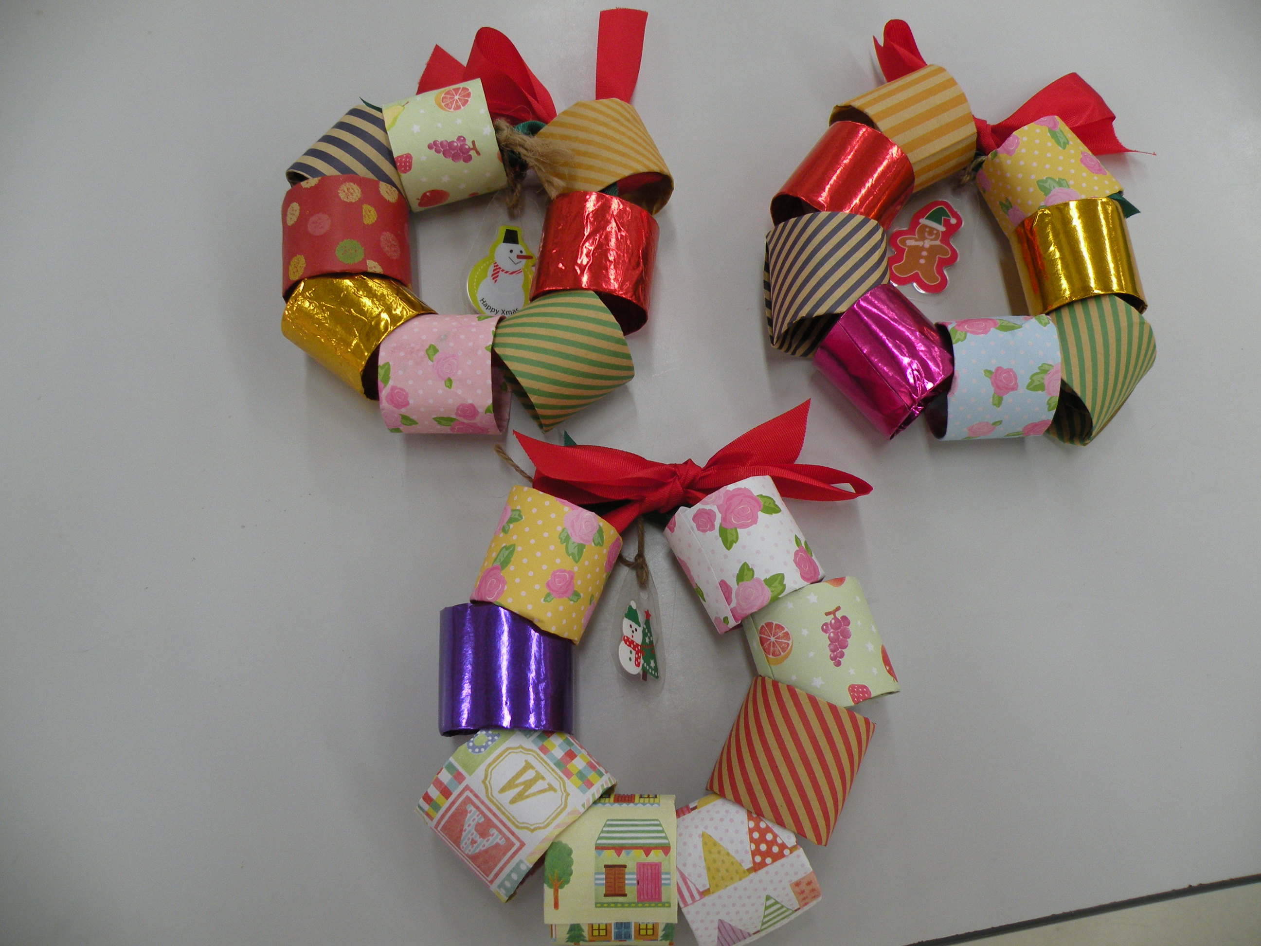 皆さん筒に折り紙を綺麗に巻かれ、作られました。