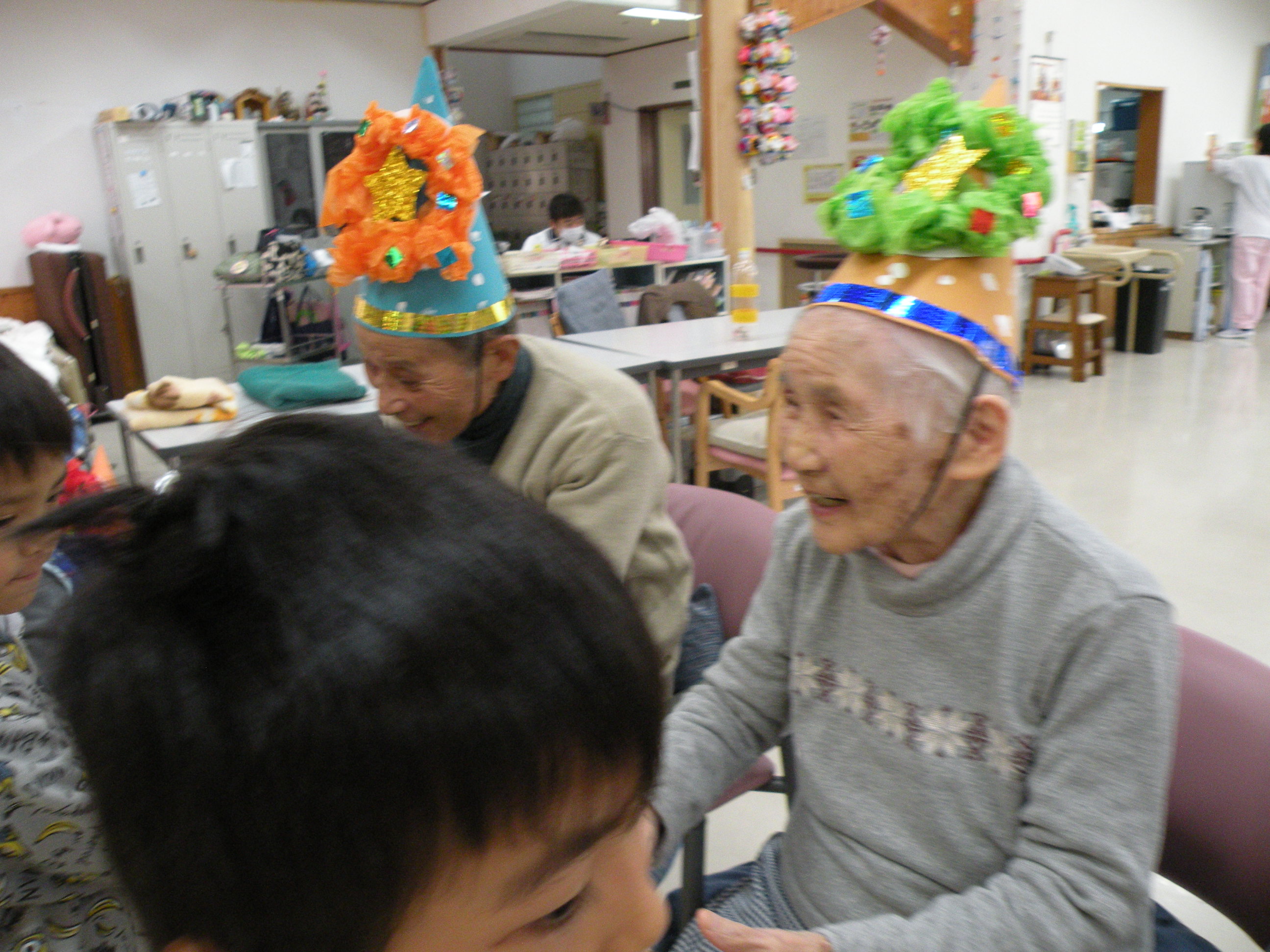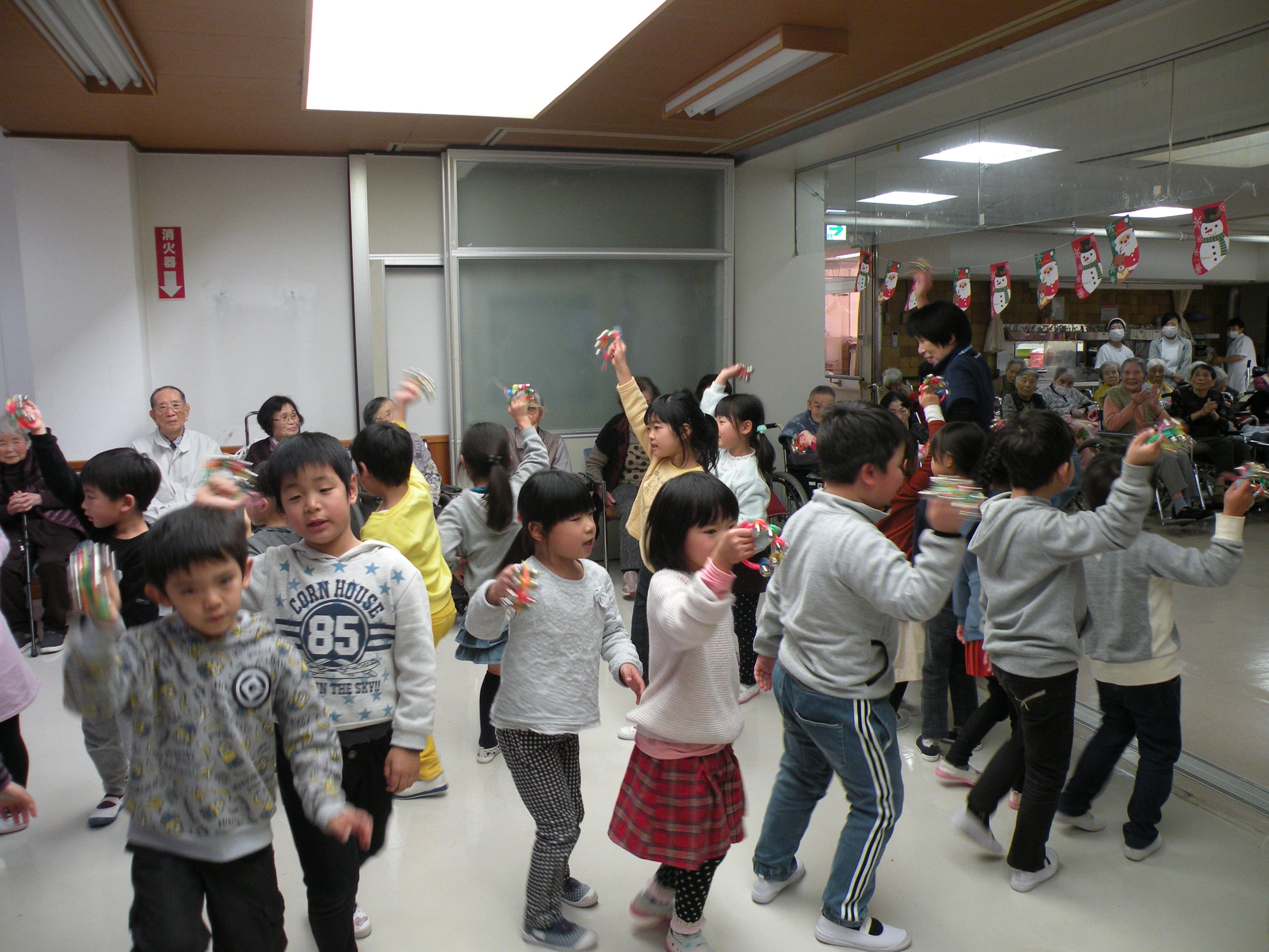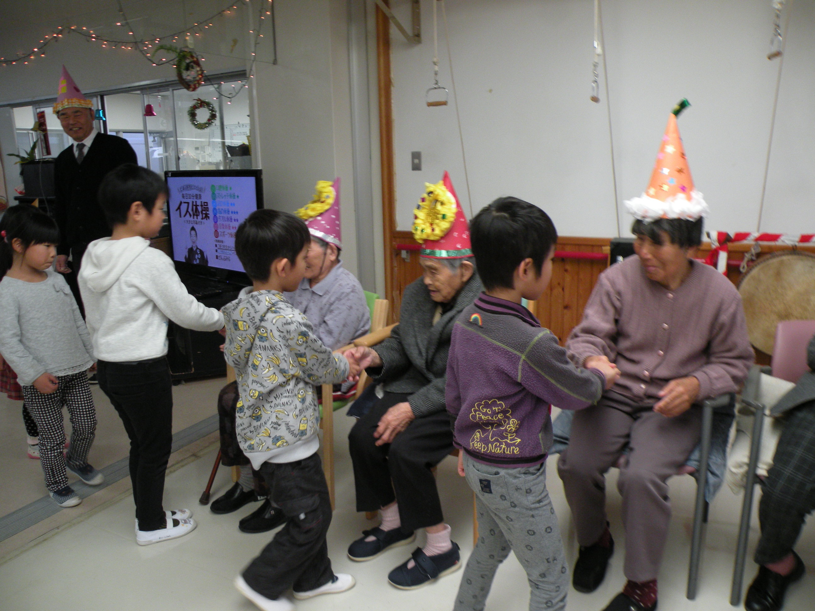 園児さんの可愛いダンスと手作り三角帽子のプレゼントで