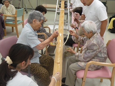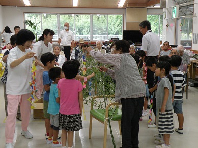 川辺保育園の慰問があり、一緒に七夕の飾り付けをしました。