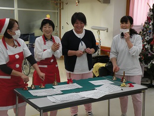 職員によるハンドベルの演奏に、きよしこの夜などのクリスマスソングの合唱