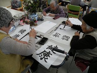 カルタやすごろく、書道などを楽しんでもらいました。