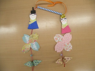 2月のクラフトは、吊って飾る「つるし雛」を作りました。