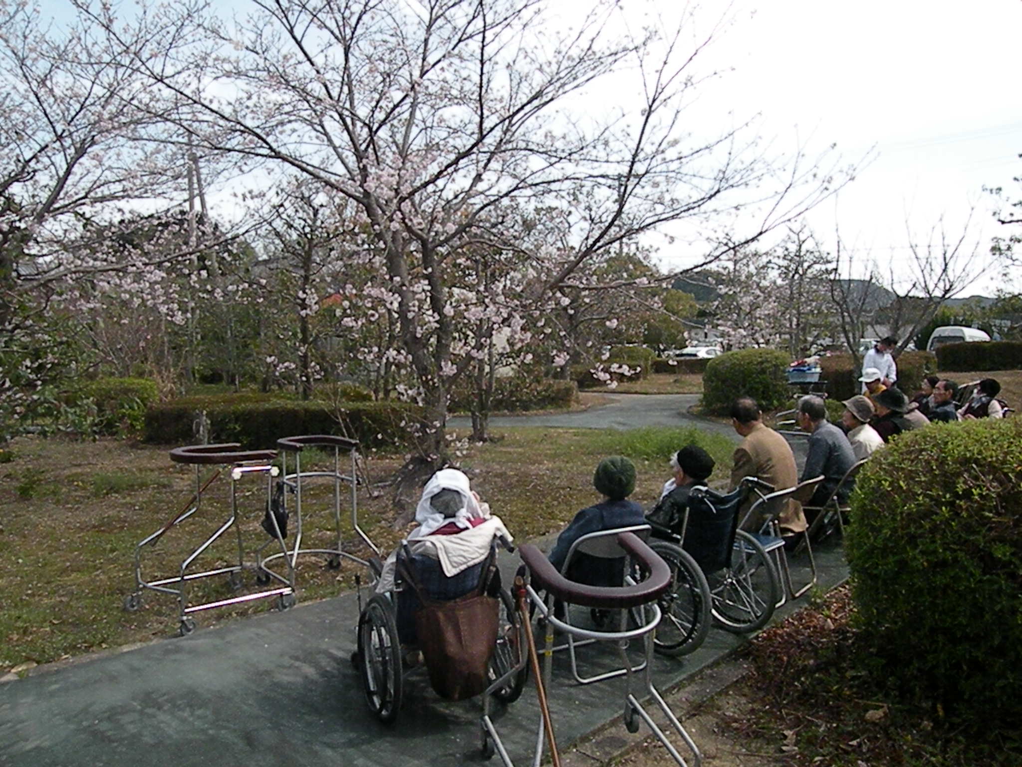 庭園散歩にて桜の花見を行いました。 今年もとてもきれいに咲きました。