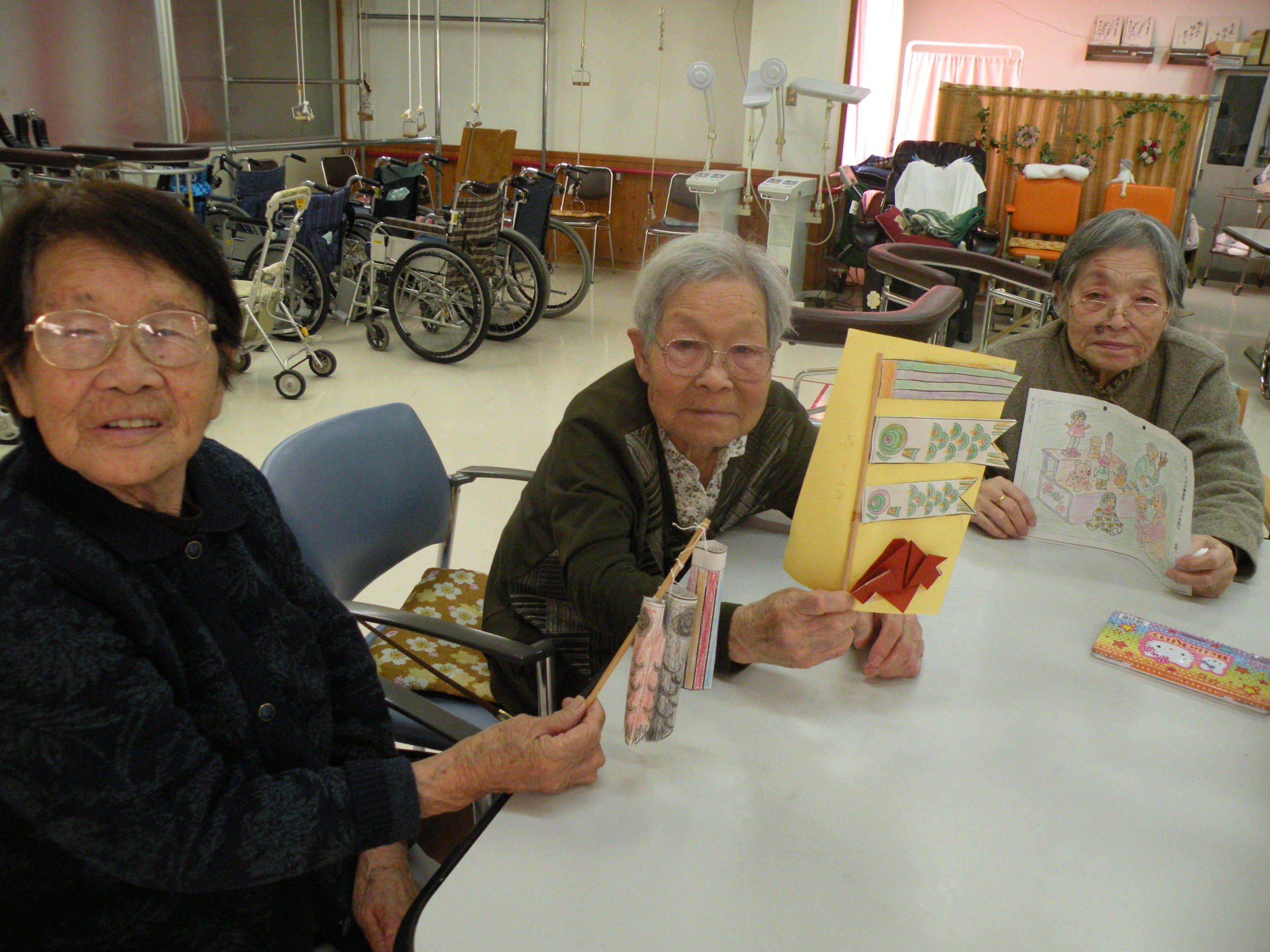 5月のクラフトとして、こいのぼり作りをしました。色を塗り、ハサミで