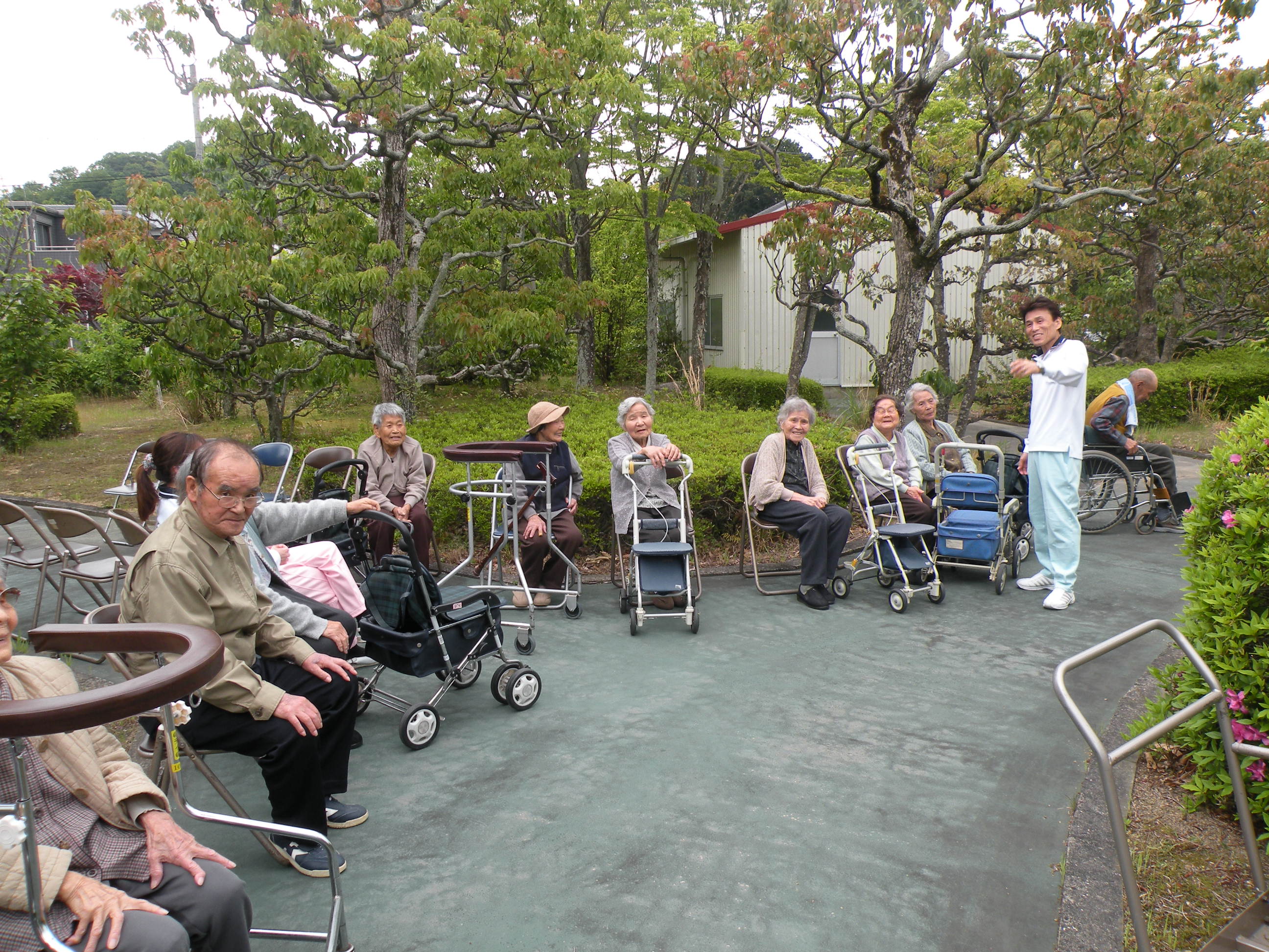 川辺園の庭園は、色々な草花や木々が植えられ、それらを鑑賞し、外の空気も