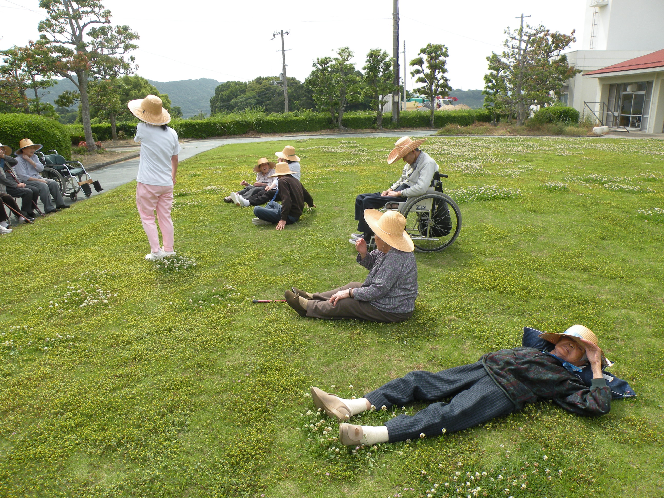 吸いながら庭園散歩をしました。また芝生の上に座ったり、寝転がったりしな