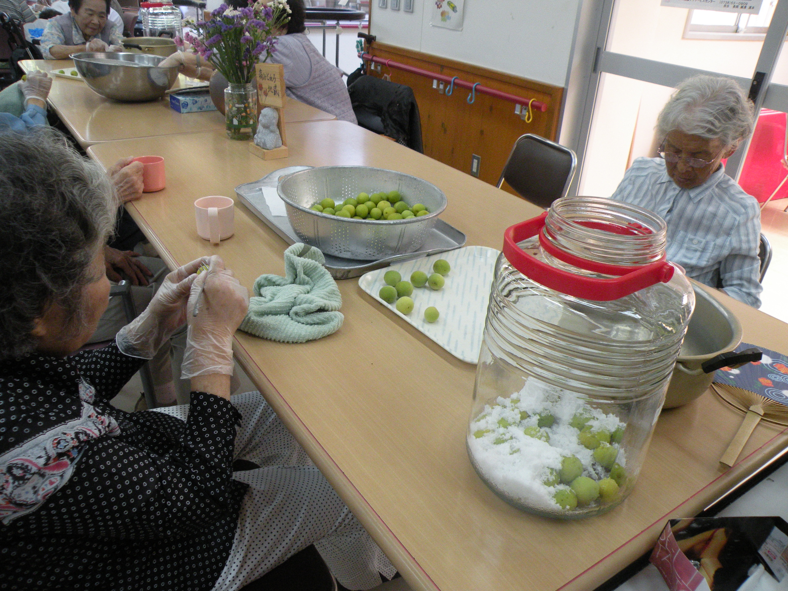 梅の実をきれいにして、恒例の梅ジュース作りを行いました。