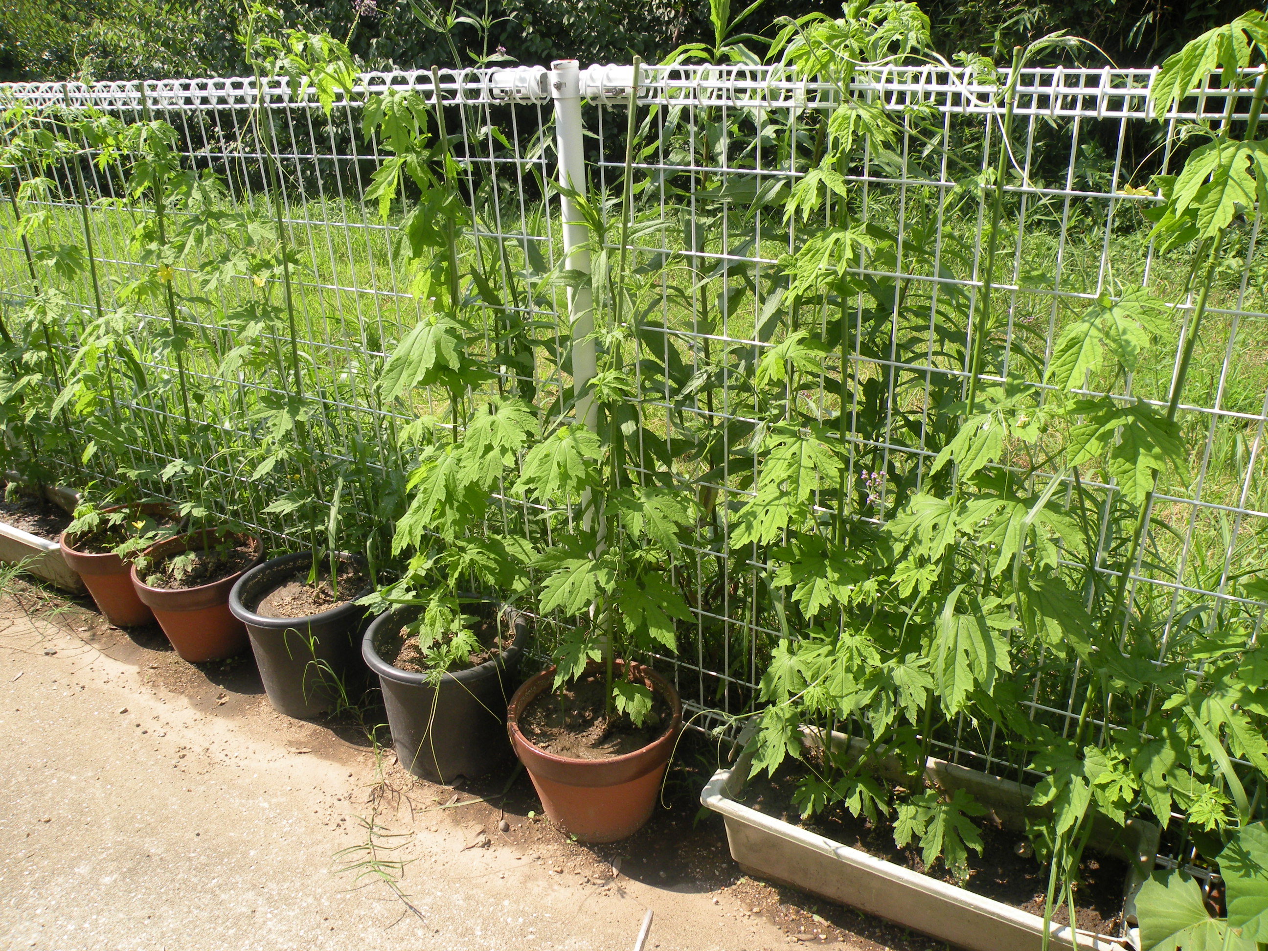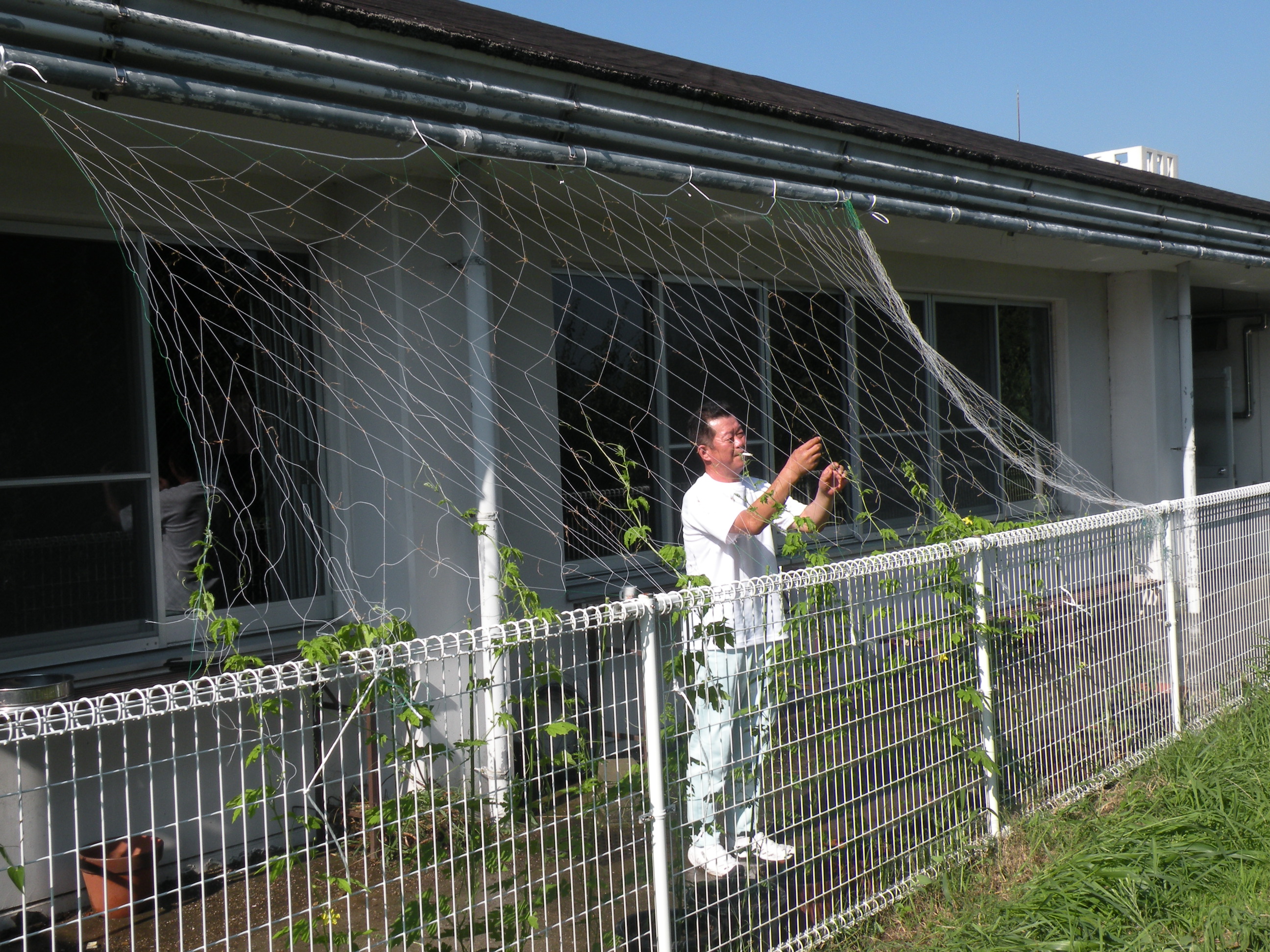 組みました。後に実ったゴーヤは収穫し、佃煮作りも予定しています。