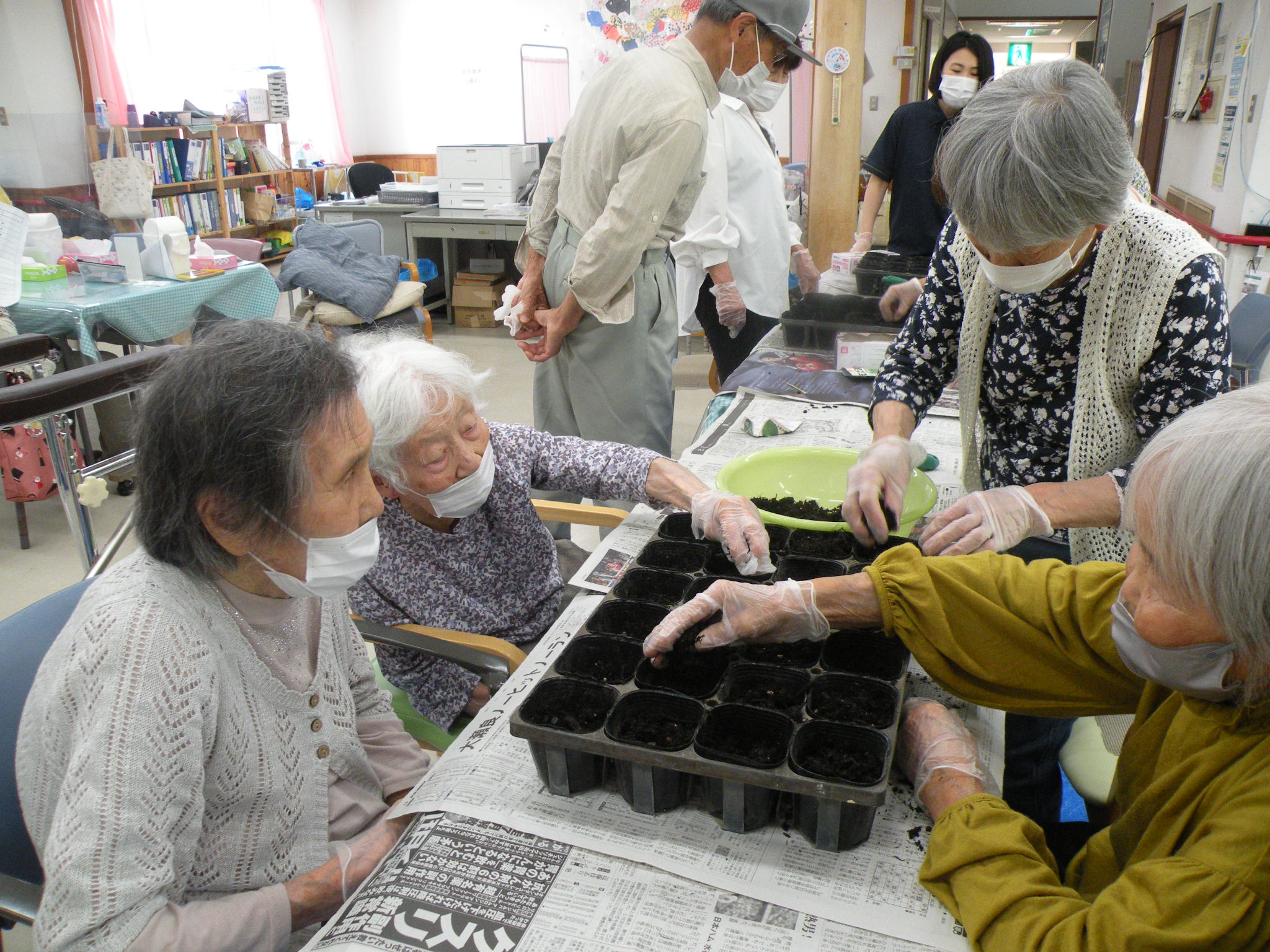 数日前に枝豆とヘチマの種を蒔いていだだき(^^)