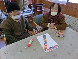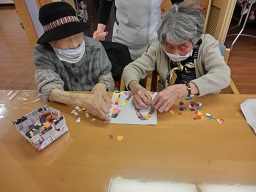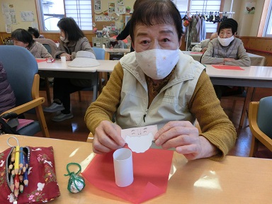 クラフト活動としてお正月飾りを制作していただきました。