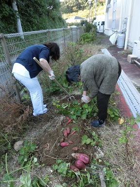 菜園では利用者様が手際よく