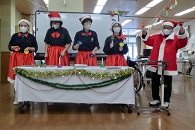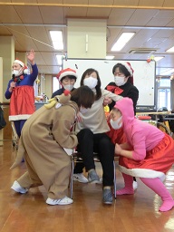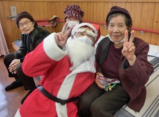 照れながらサンタと写真に写る皆さんの笑顔が