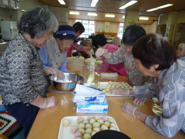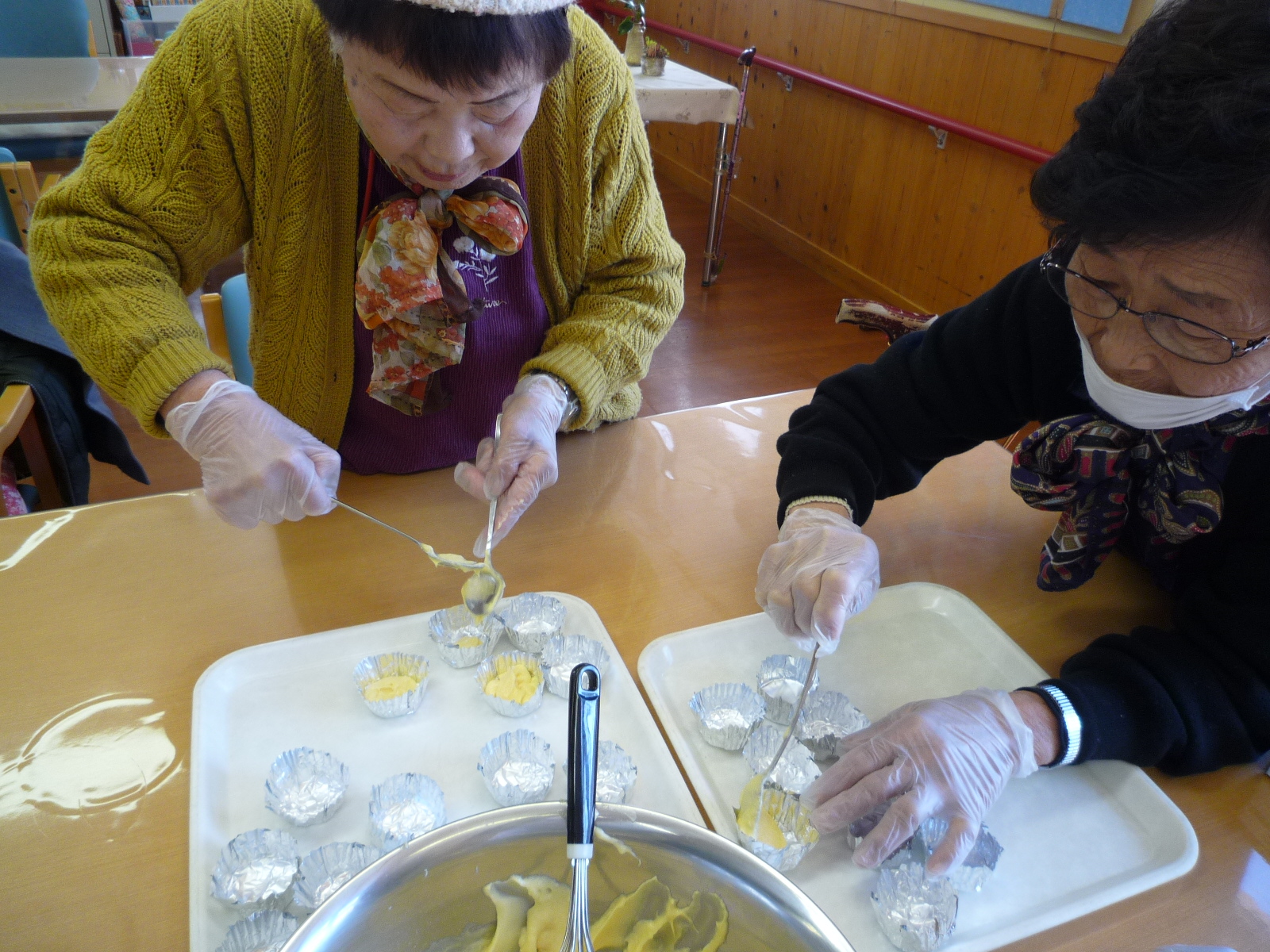 利用者のみなさんにも手伝ってもらい、おいしいマドレーヌが出来ました。