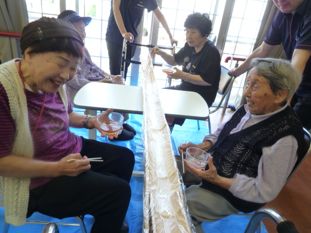 暑い季節になりました。今年も恒例の流しそうめんを行いました。