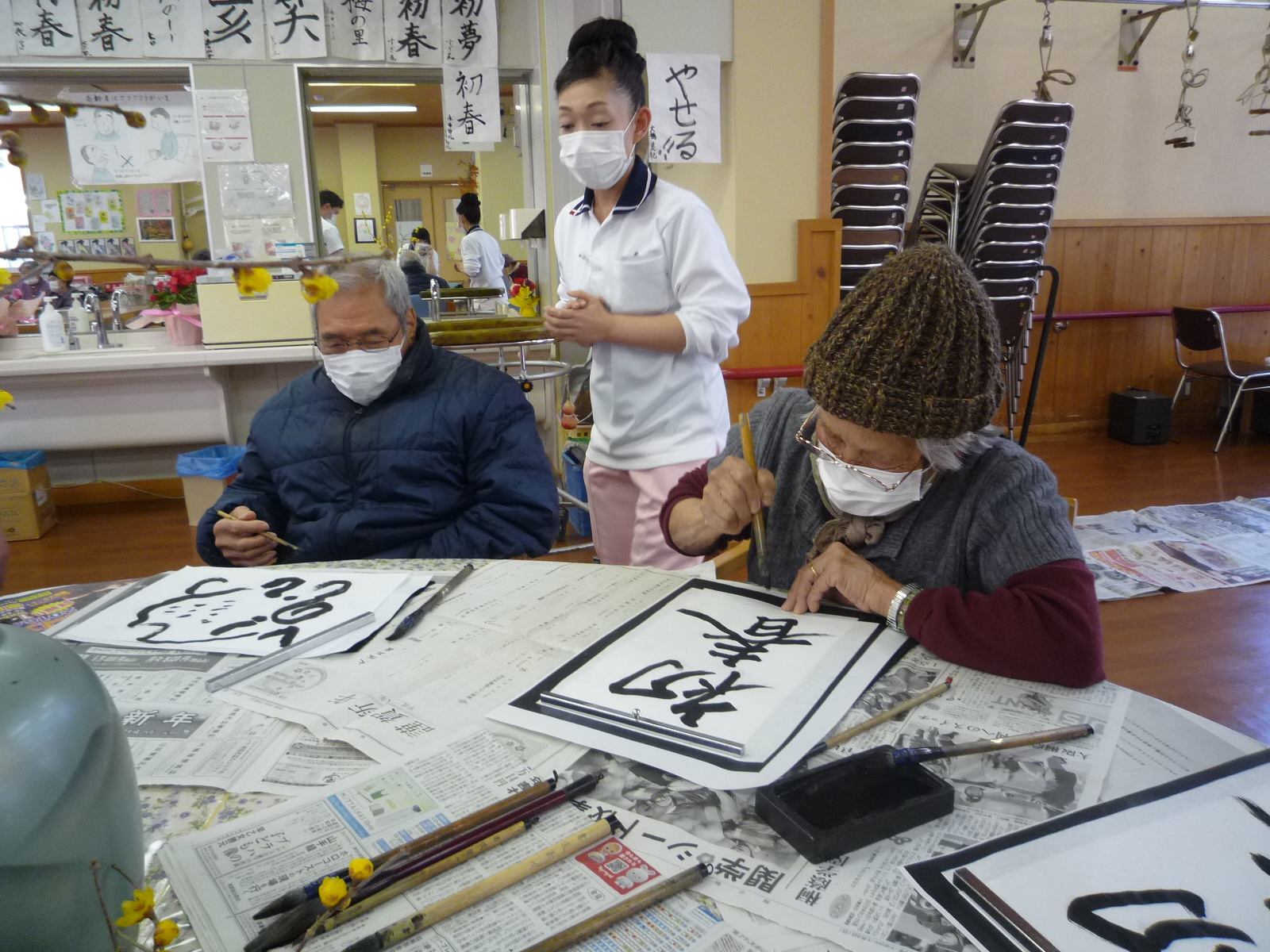 見本を見ながら、または思い思いに書いたり、1年の目標を書かれる方など、