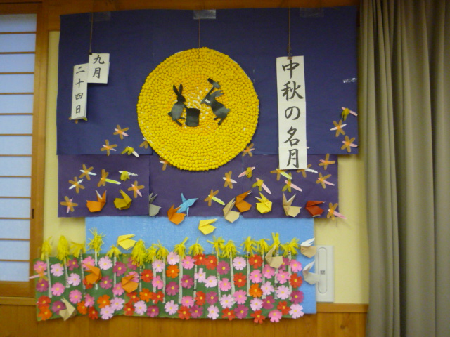 利用者のみなさんと作った、9月分の壁クラフトが出来上がりました。